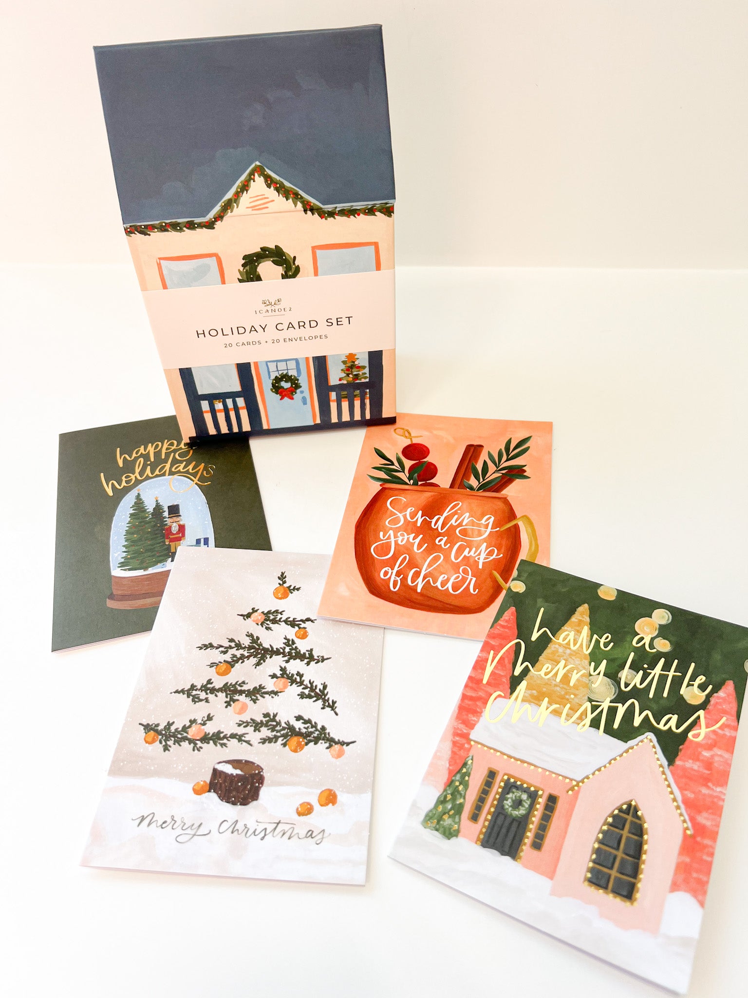 Spread holiday cheer with this Christmas Cottage Specialty Greeting Card Box Set! Each set contains 20 folding cards, each adorned with cozy holiday scenes and festive greetings.