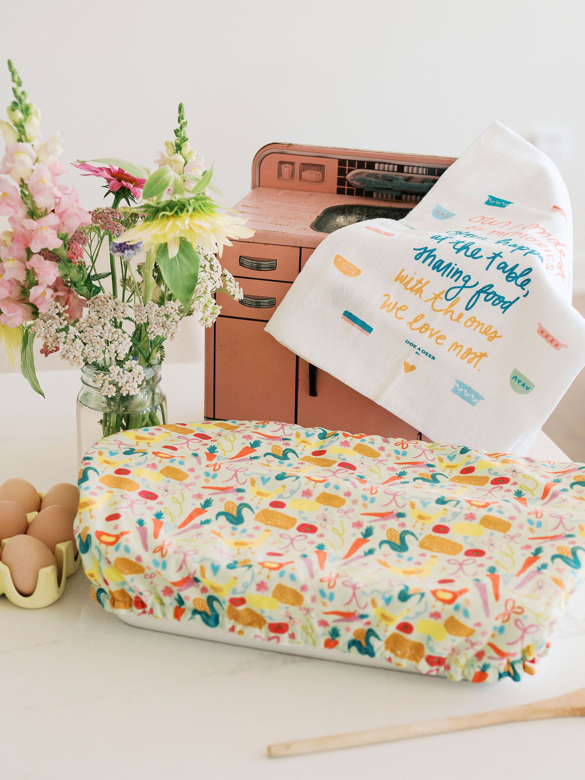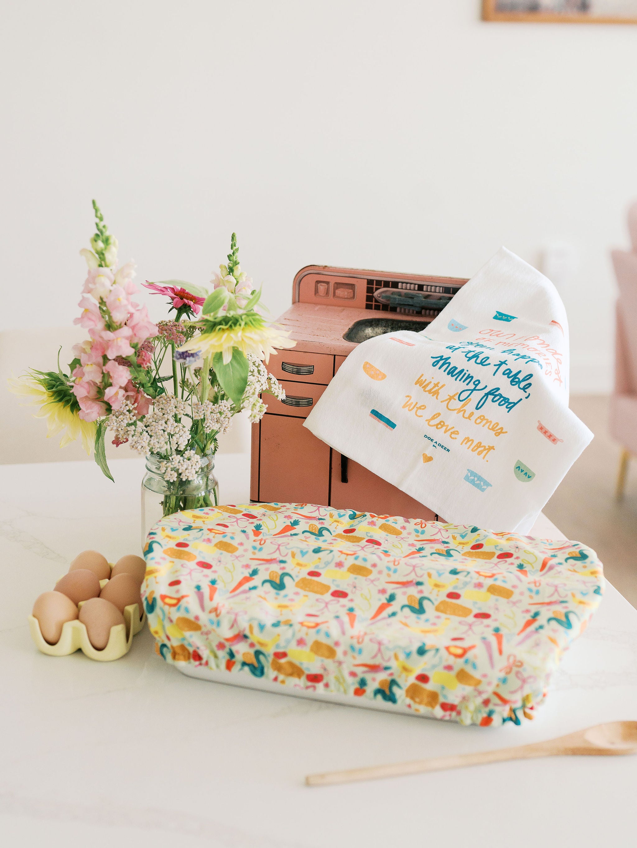 Keep your casseroles cozy and your leftovers covered in charm! Our Farm Fresh baking dish cover is made from high-quality cotton with a food-safe, water-resistant lining—perfect for storing dishes straight from the oven to the fridge. Elastic edges ensure a snug fit on most 9x13 pans, while the cheerful chickens and veggies brighten every kitchen moment.