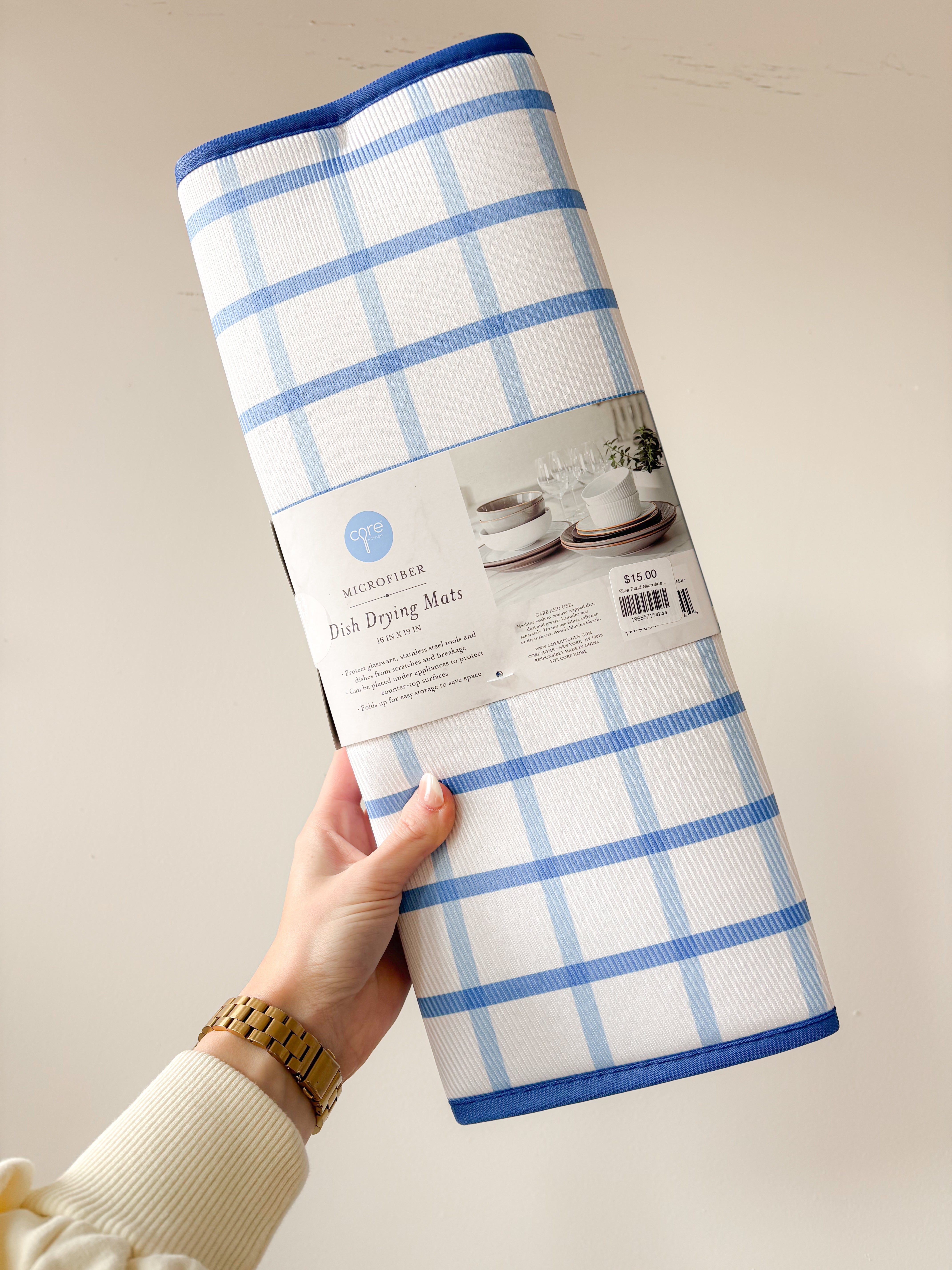 Blue Plaid Microfiber Drying Mat