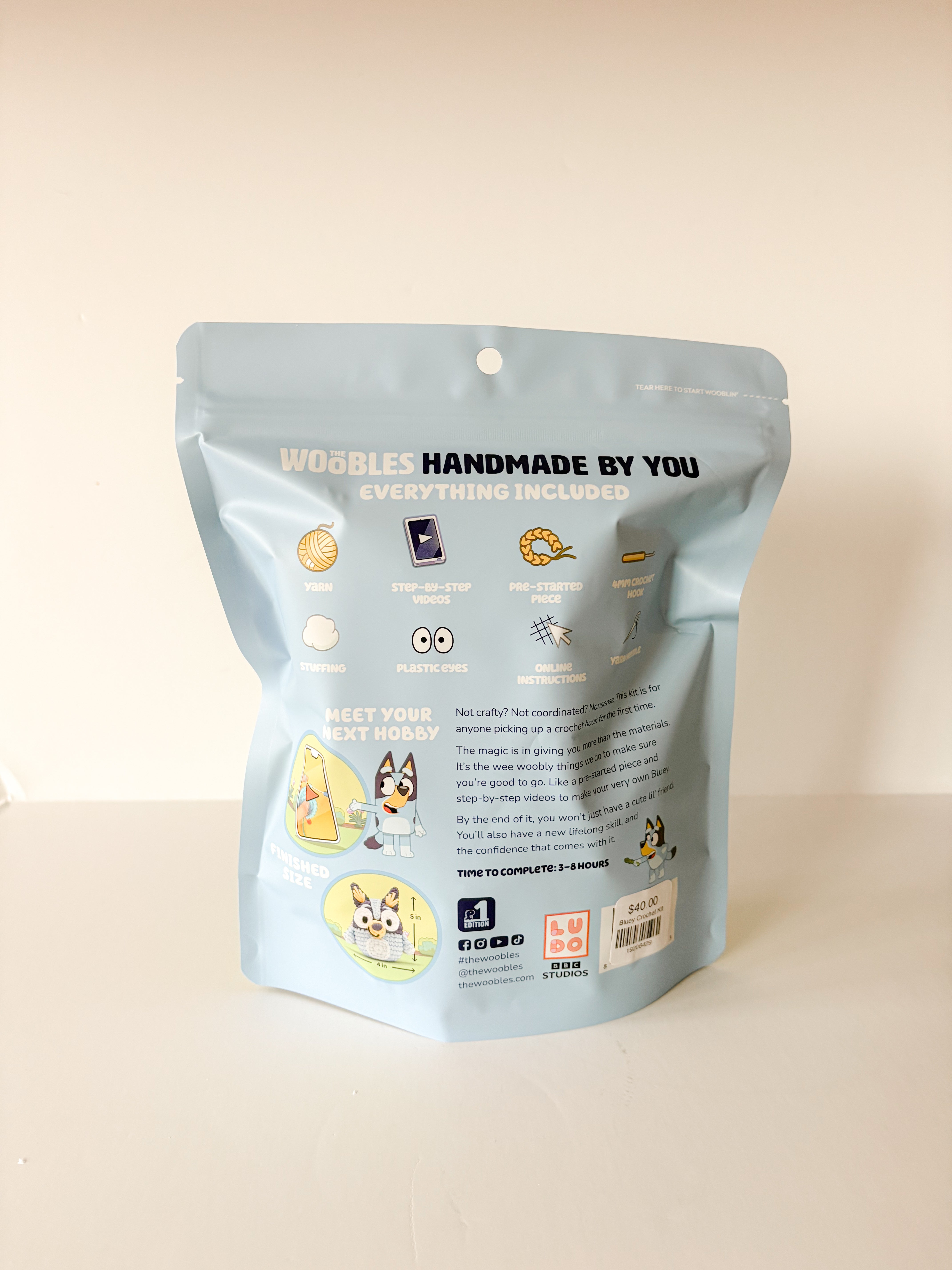 Yet even with all those Blue-tiful details, this bud uses only beginner-level skills, making her perfect for Wooblers of any level. Plus, with that Keepy-Uppy–themed custom hook, this kit is pretty much impossible to put down. So grab some Easy Peasy Yarn™ and turn on our step-by-step videos as you bring this irresistibly playful pal to life!