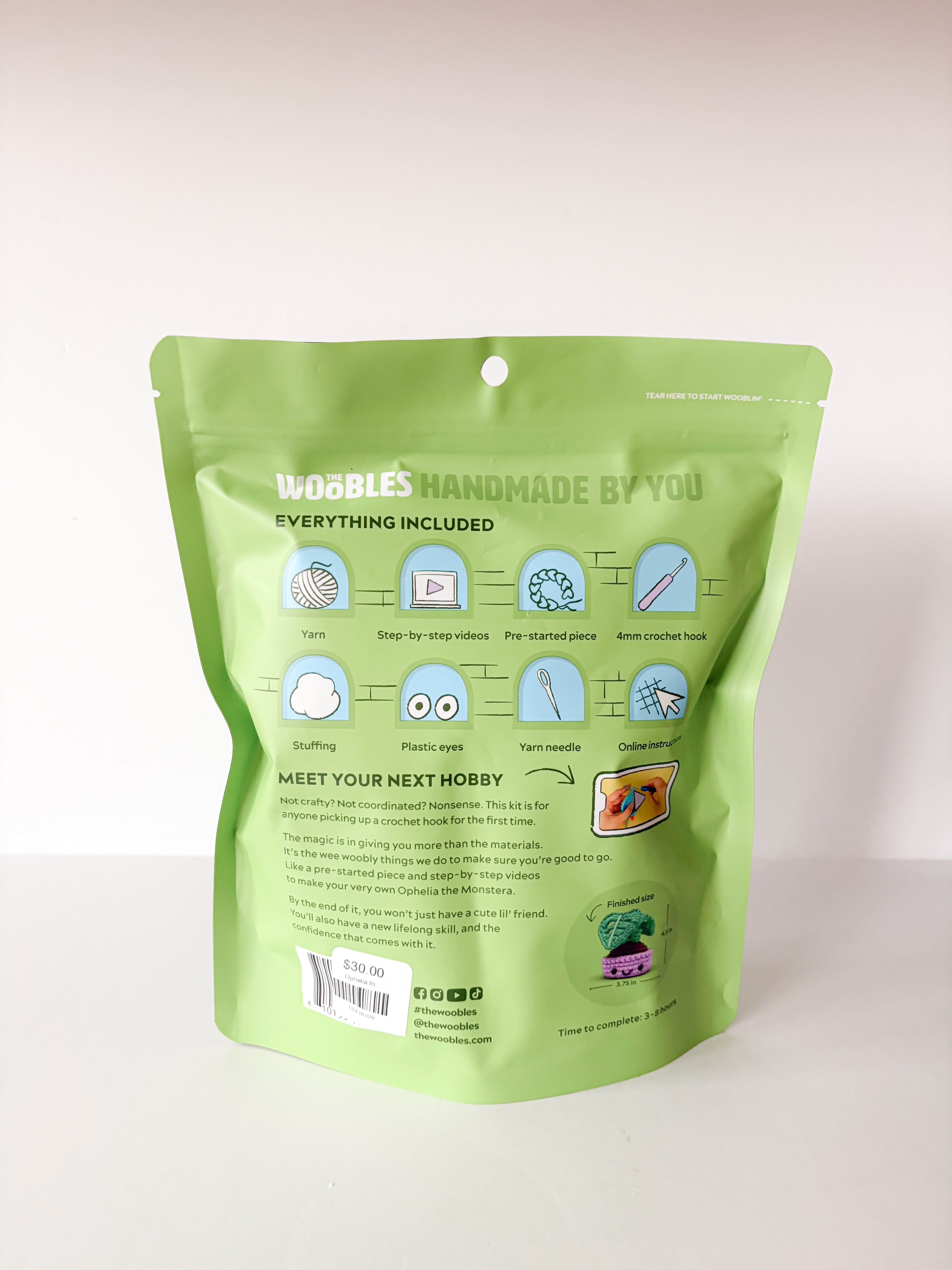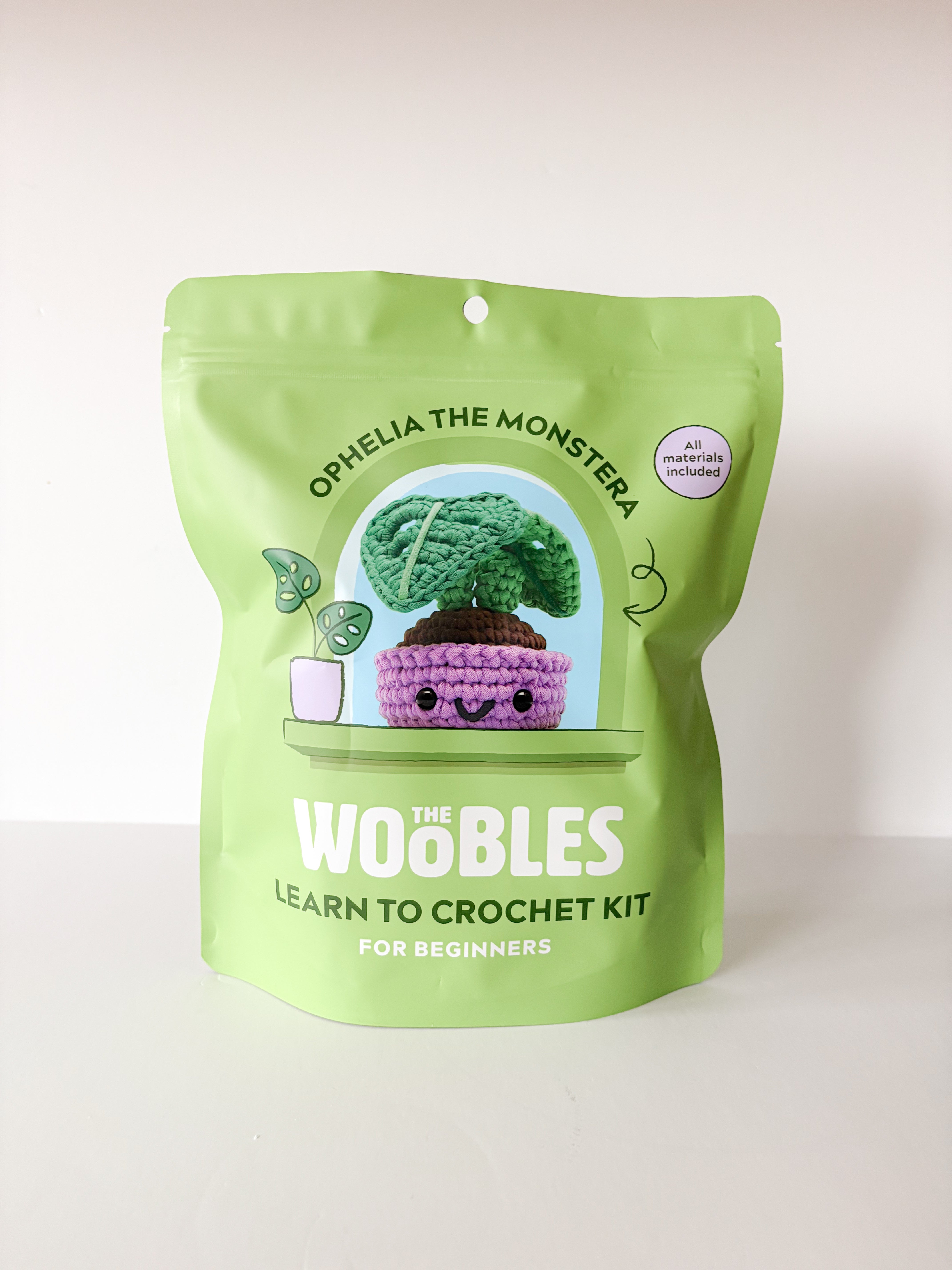 Not only that, but even though she’s rockin’ a hole slew of delightful details, Ophelia remains fantastic for Wooblers of any level. That’s because our Easy Peasy Yarn™ and step-by-step videos make even the Beginner+ techniques seem monstera-ously simple. So what are you waiting for? Grab your hook and get ready, ’cause you’d better be-leaf we’re about to have a hole lotta fun!