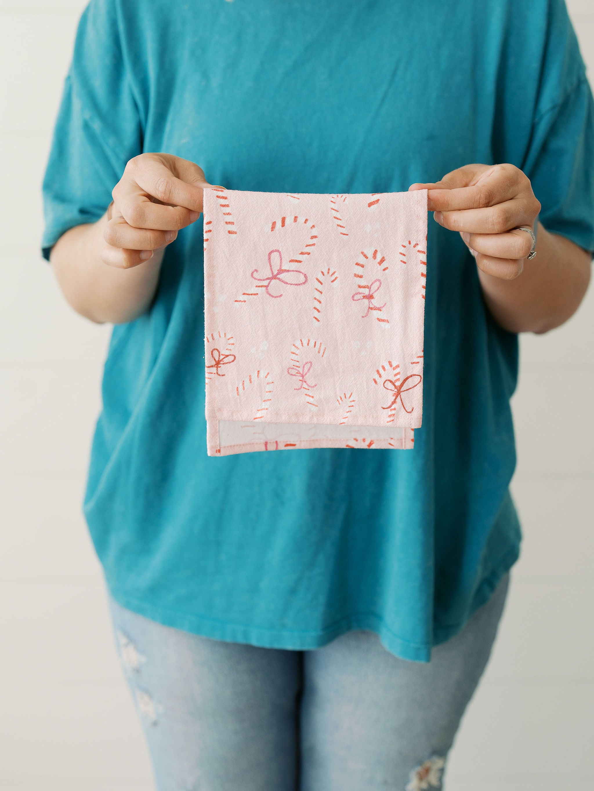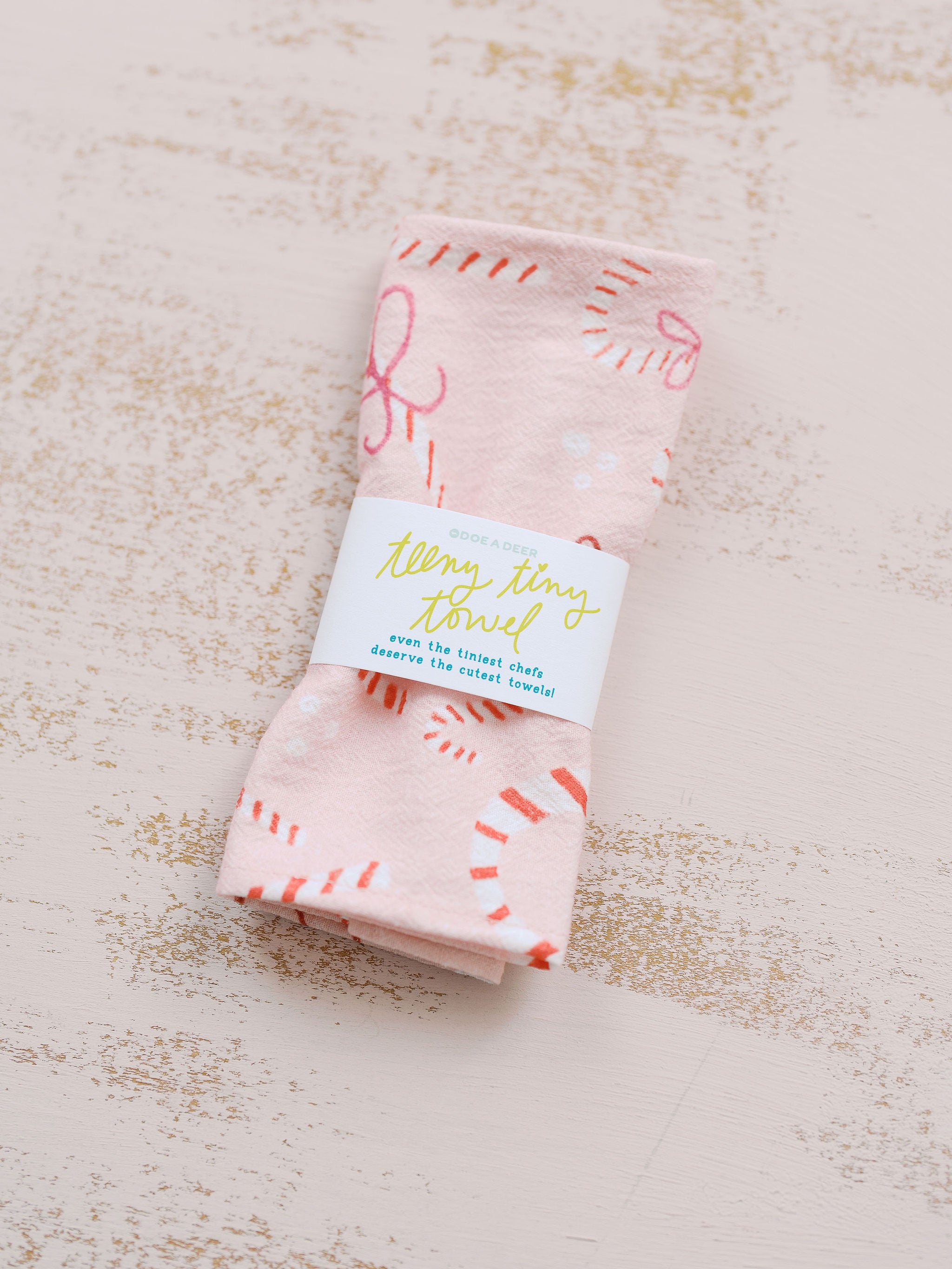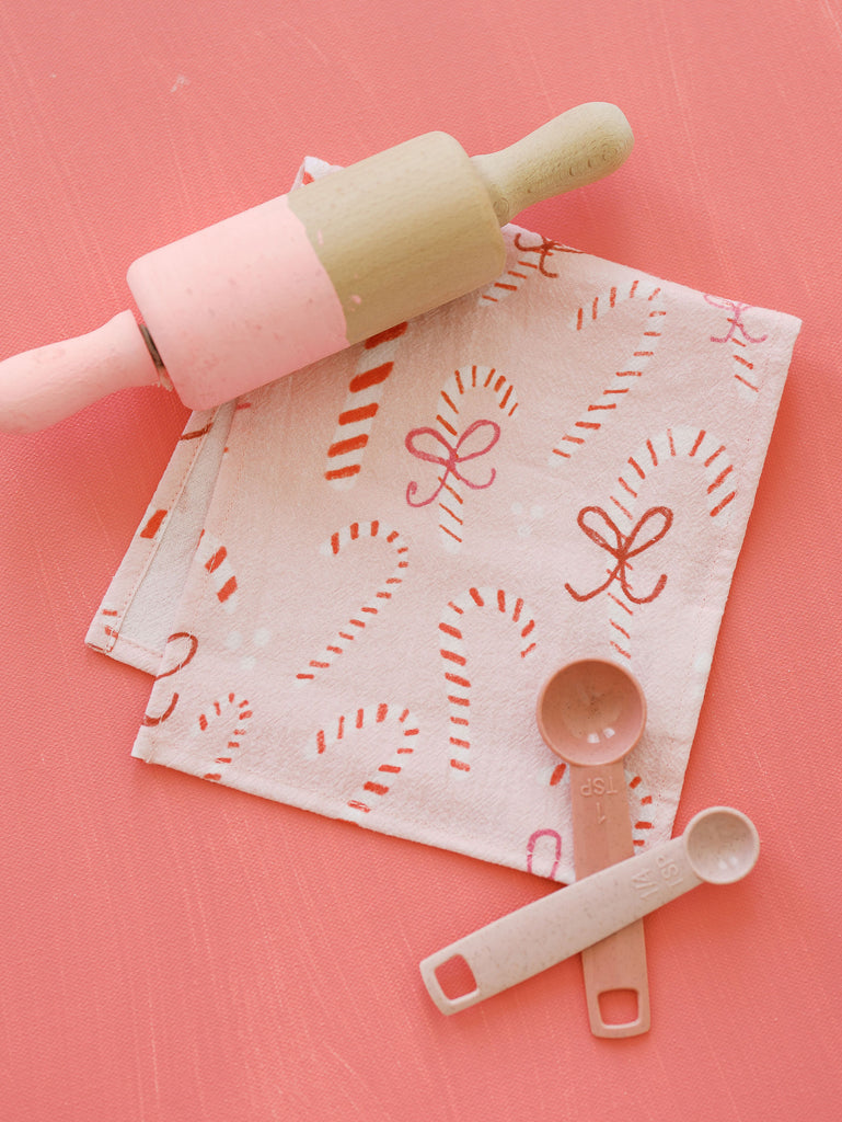 Little helpers deserve holiday cheer too! The Candy Cane Teeny Tiny Towel is a kid-sized version of our full pattern flour sack towel, made just for small hands with big Christmas spirit. Same sweet pattern, same soft cotton fabric—just mini!
