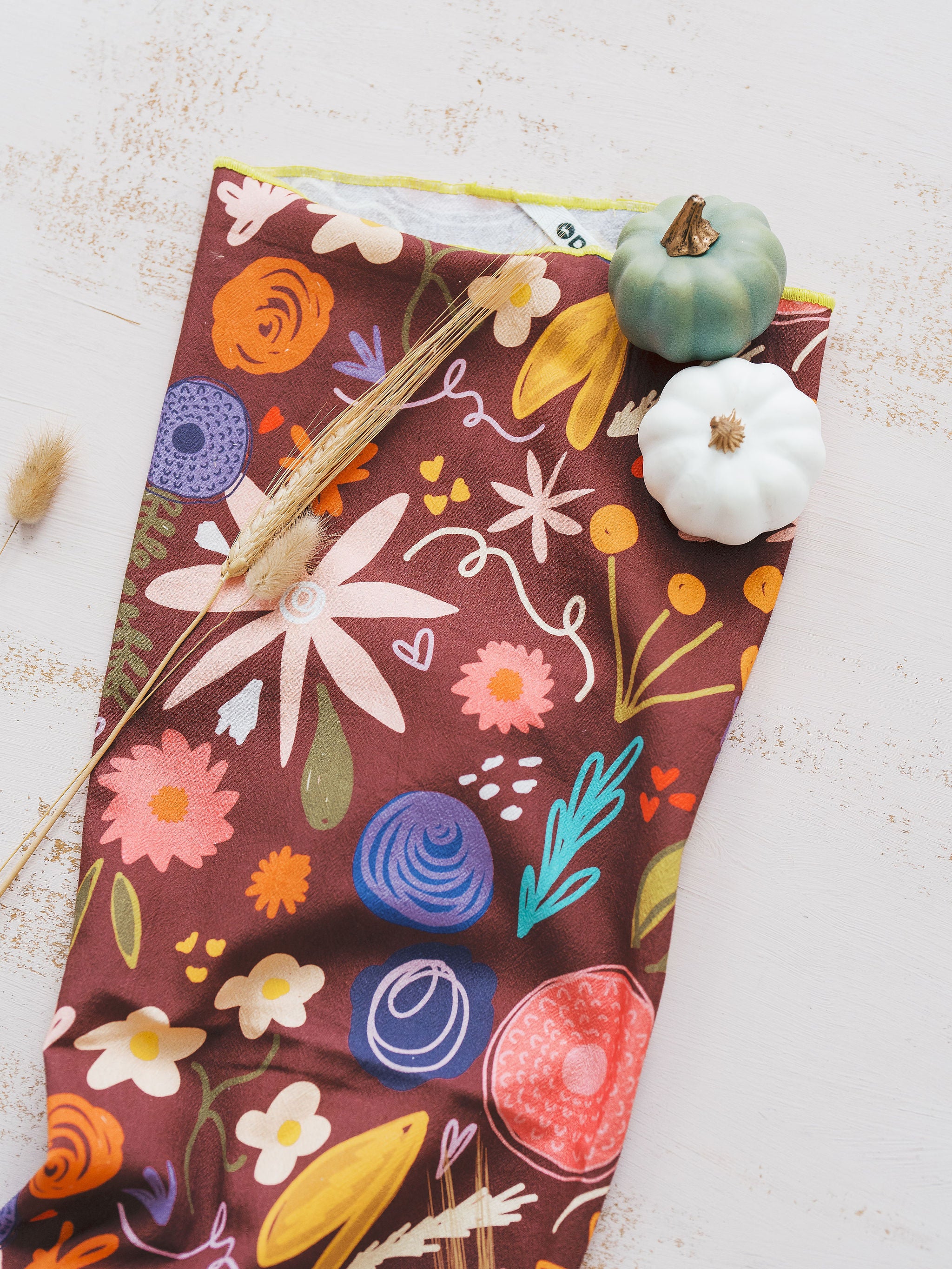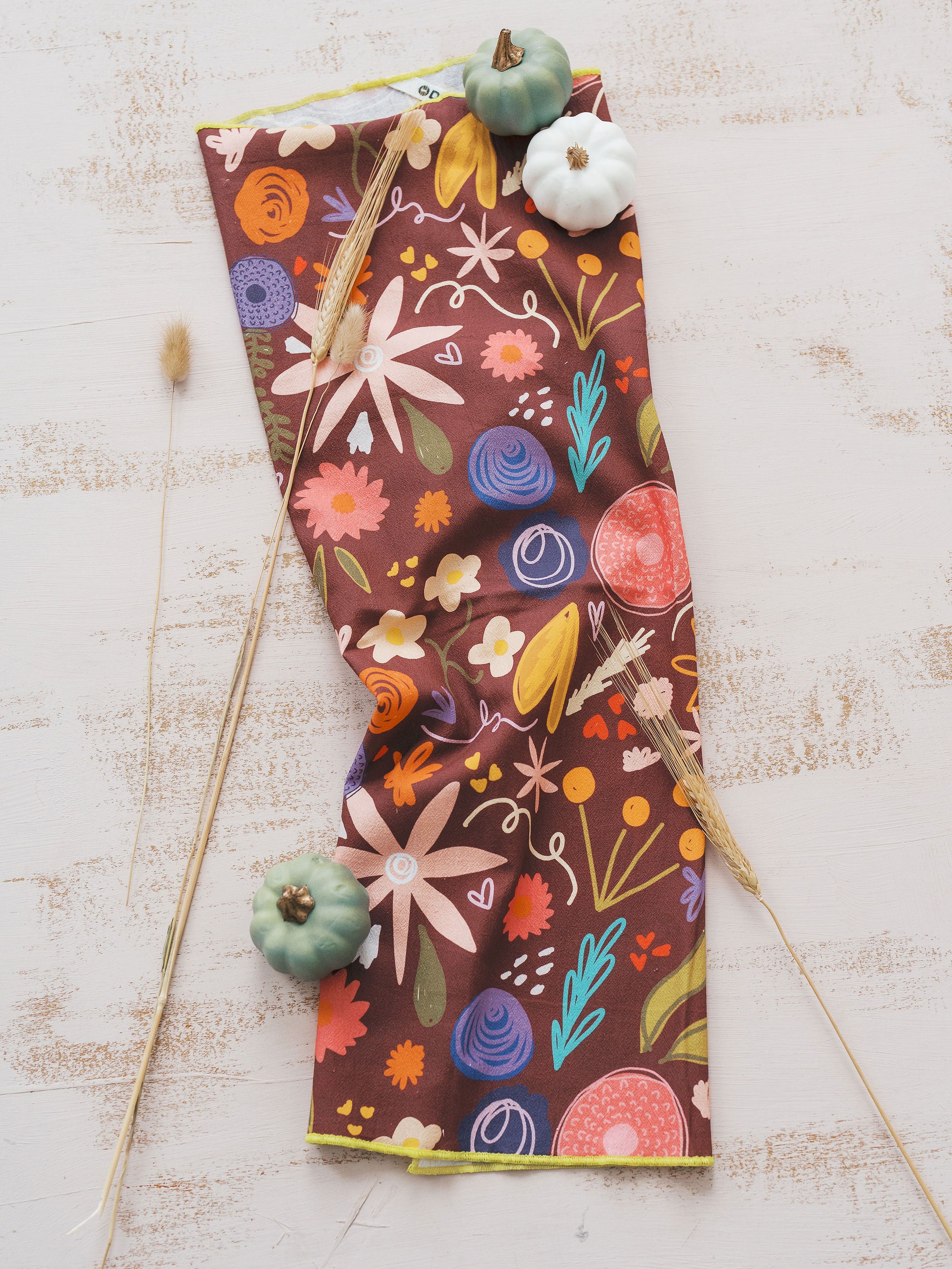 This floral fall towel brings all the warm colors of the season right to your kitchen. Whether you're drying dishes after baking apple pies or lining a basket of fresh cornbread, this towel adds a cozy, homespun touch to your autumn routines.