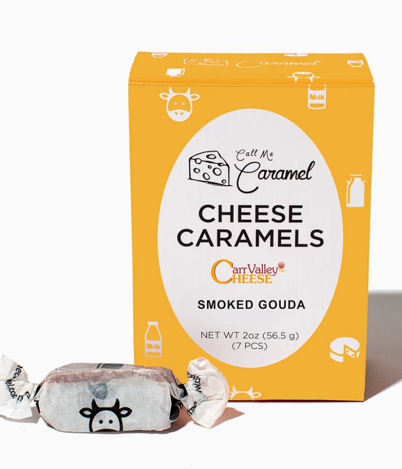 Infused with Carr Valley Smoked Gouda cheese, these caramels are sweet, savory, and umami. The Gouda is melted into milk and cream and then folded into the caramelizing sugar, where it is finished with sea salt. Reminiscent of your favorite smoked cheese treats, it's dangerously addictive on its own.