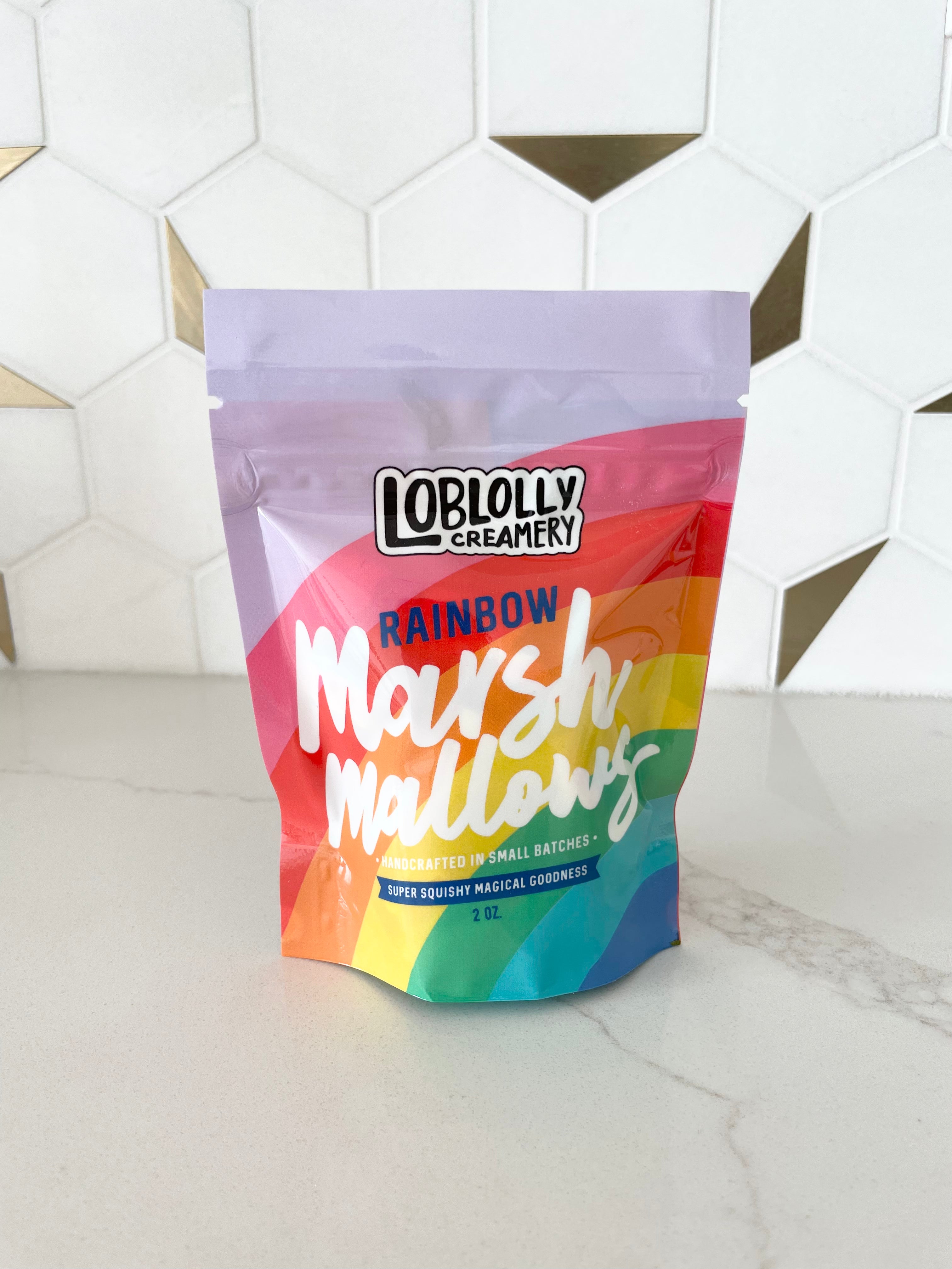 Experience a mini "taste of sunshine" with Loblolly Rainbow Mini Marshmallows! These tiny bites of sweetness pack a rainbow of flavors, brightening up your snack time with a colorful burst of flavor. One handful and you'll be smiling from ear to ear. Enjoy!