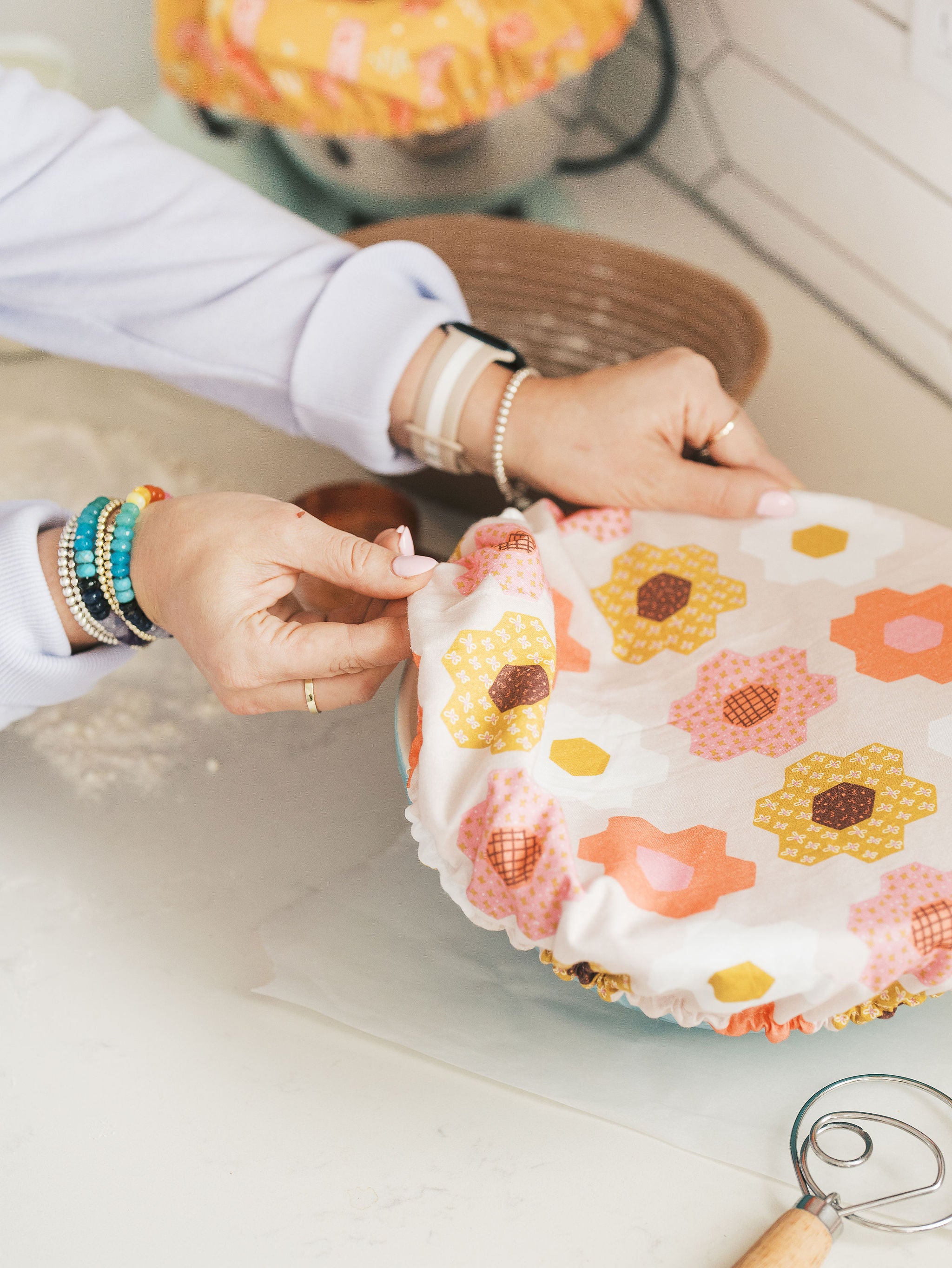 Our Flower Garden 10.5" bowl cover is a sustainable kitchen staple that fits most large mixing bowls. Great for letting your sourdough rise or storing that giant pasta salad, this cover features a patchwork design, offering a nostalgic vibe with a modern twist!