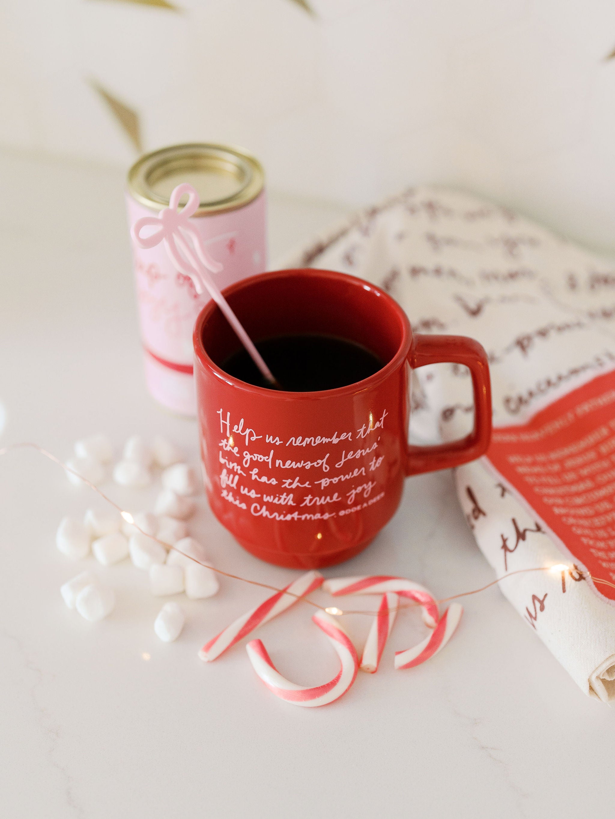 Perfect for sipping something cozy by the twinkle lights, this mug pairs faith and comfort in the sweetest way. A meaningful gift or a keepsake just for you—because joy, after all, starts with the good news. ❤️✨