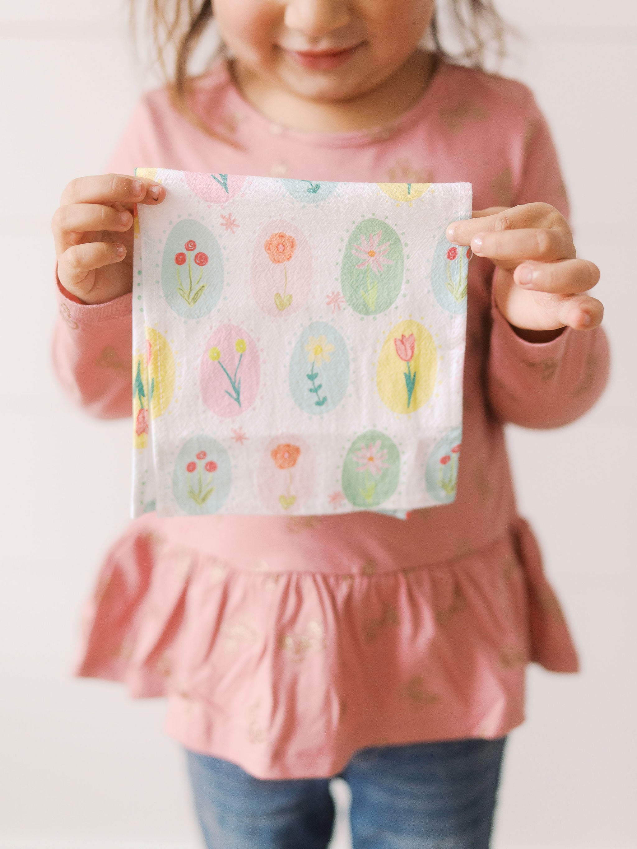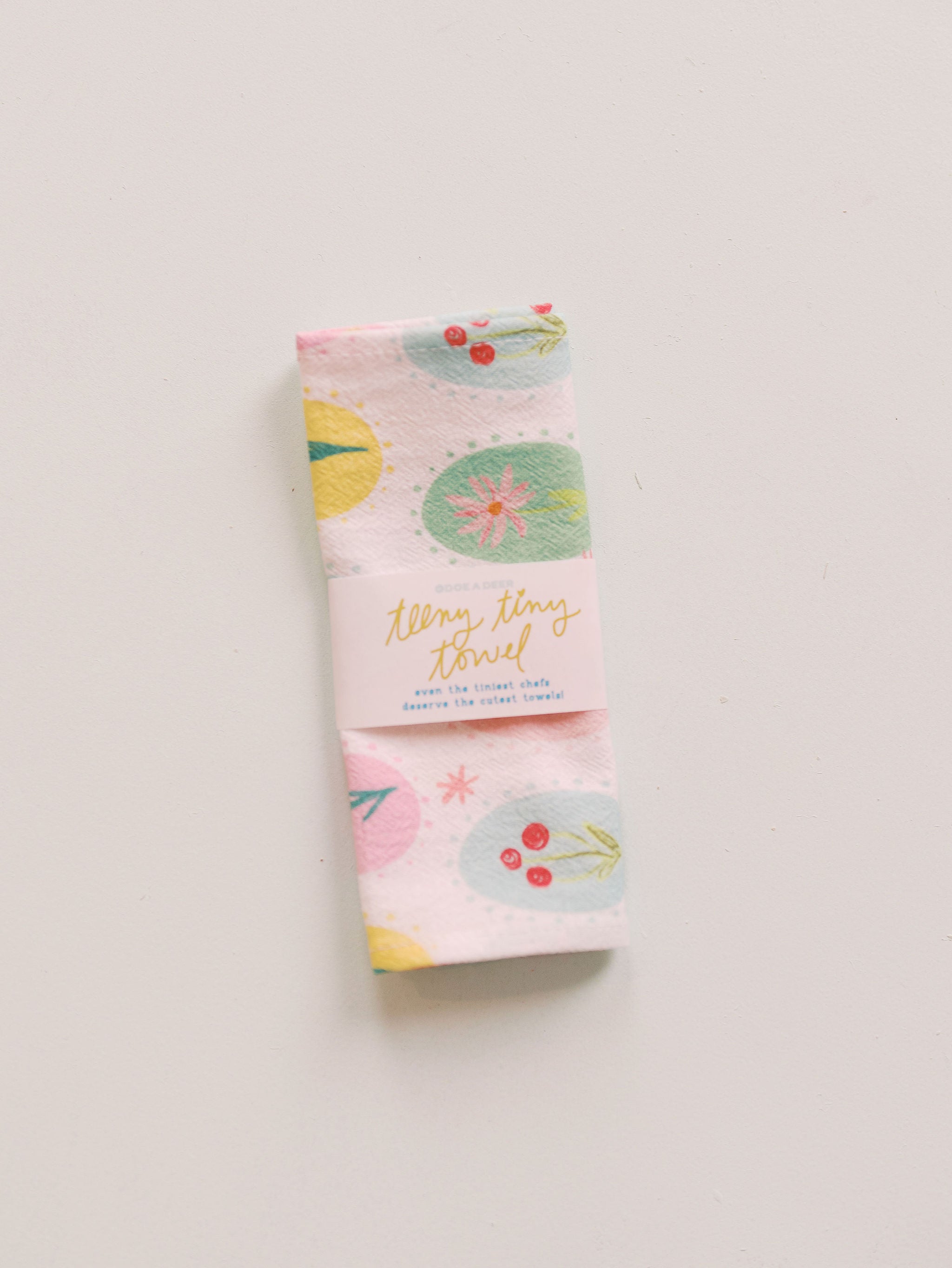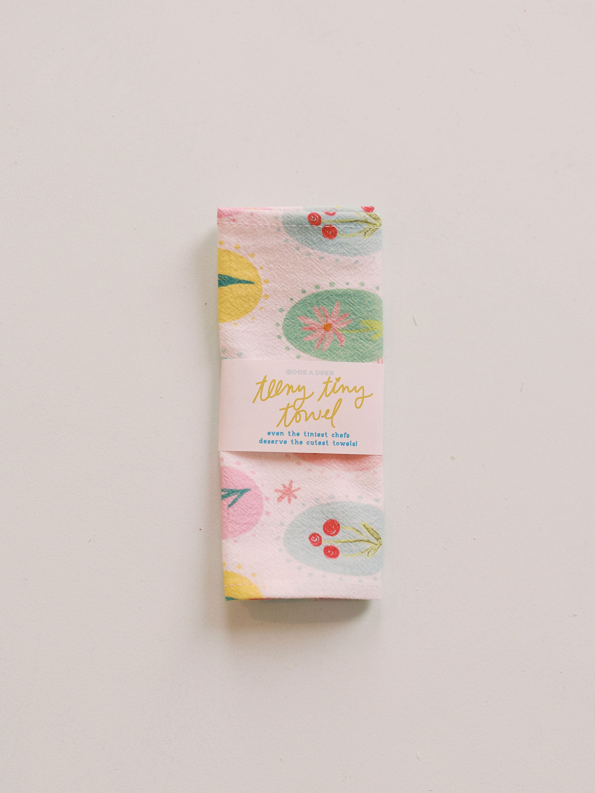 Perfectly sized for little hands and big imaginations, the Framed Flowers teeny tiny towel brings playful charm to cleanup time or playtime! The pastel-framed florals feel like a storybook wall of tiny art pieces—sweet, colorful, and full of whimsy. Whether it’s snack time, pretend time, or sticky-fingers-again time, this towel makes everyday moments brighter.