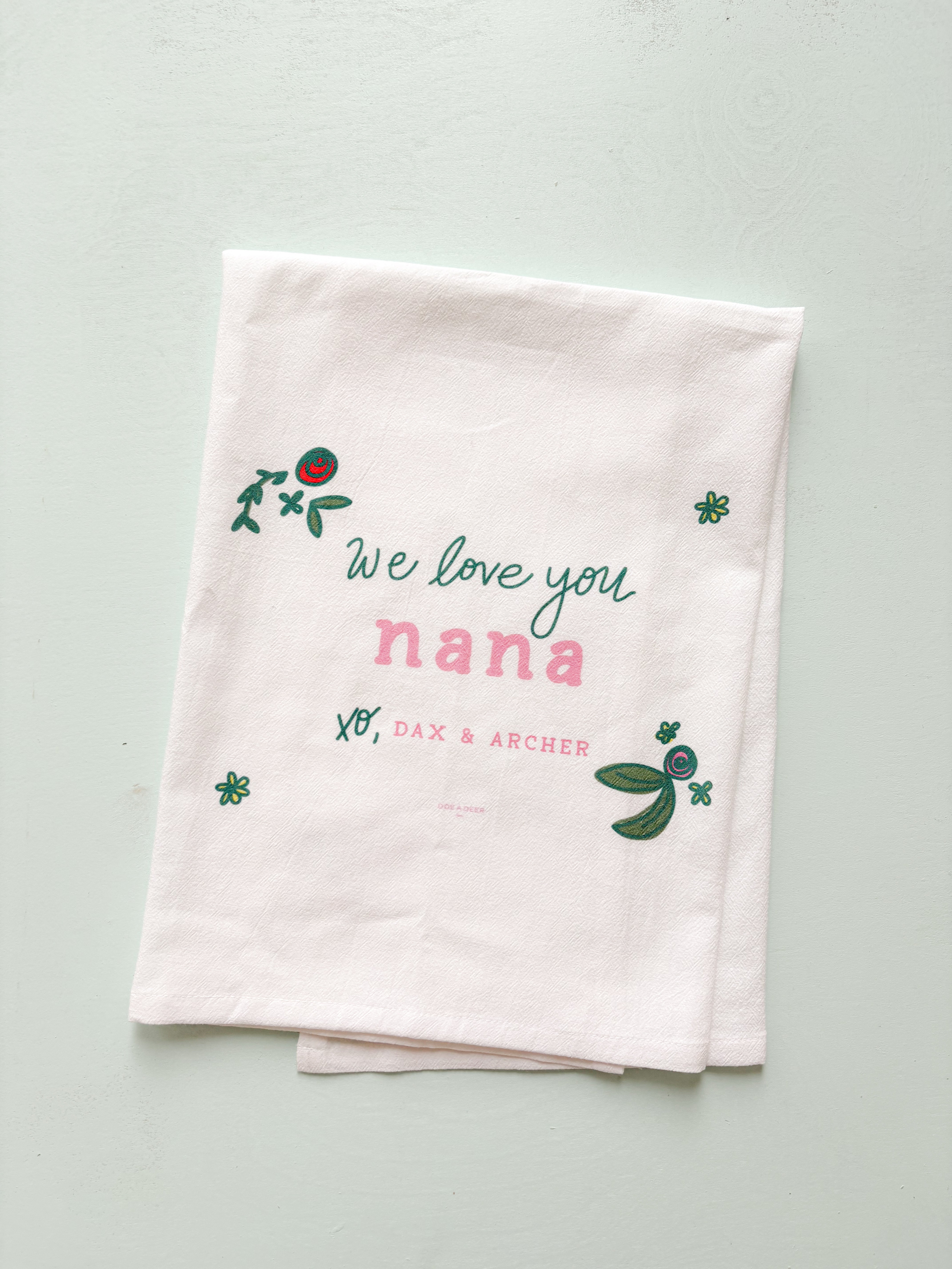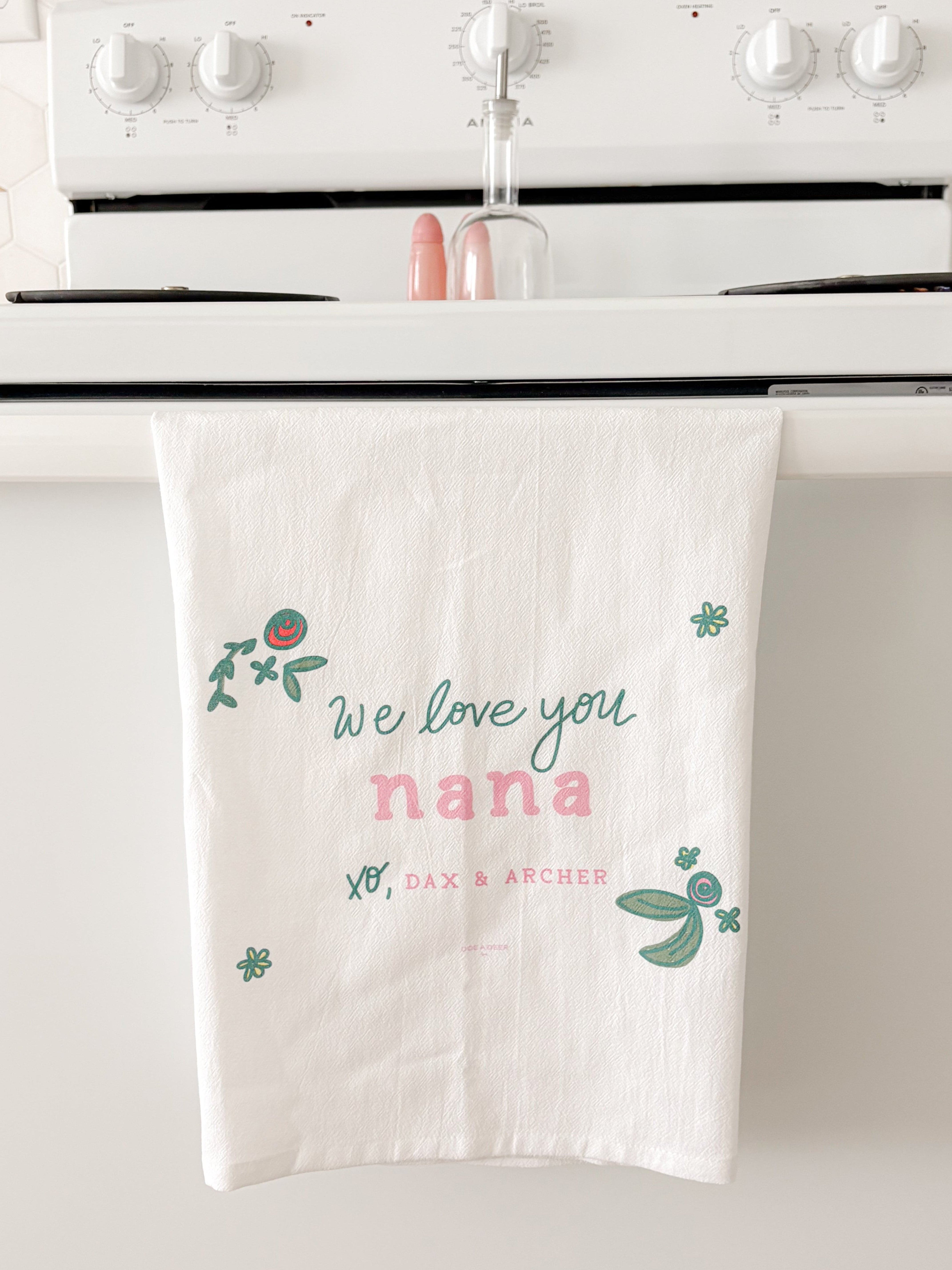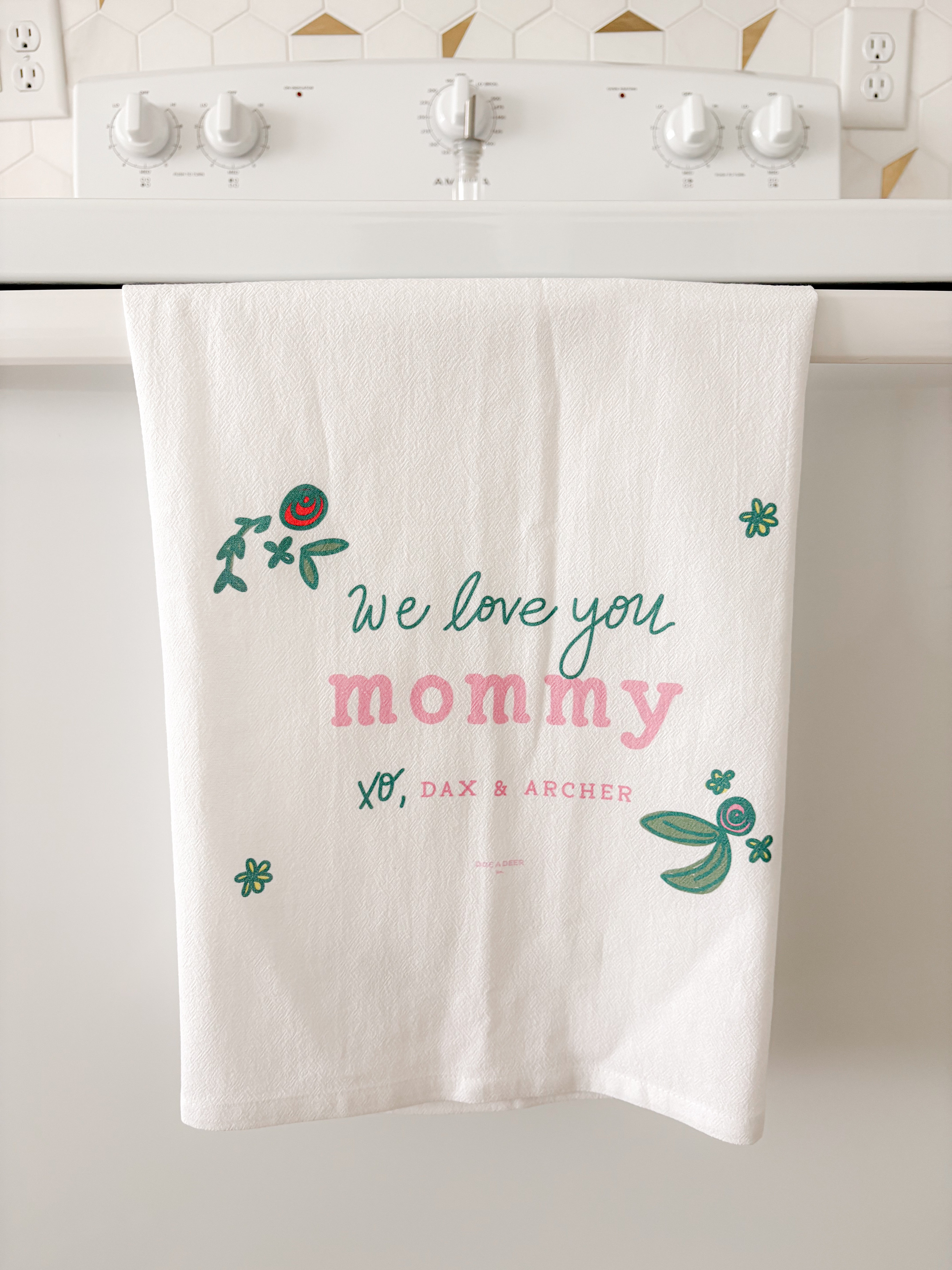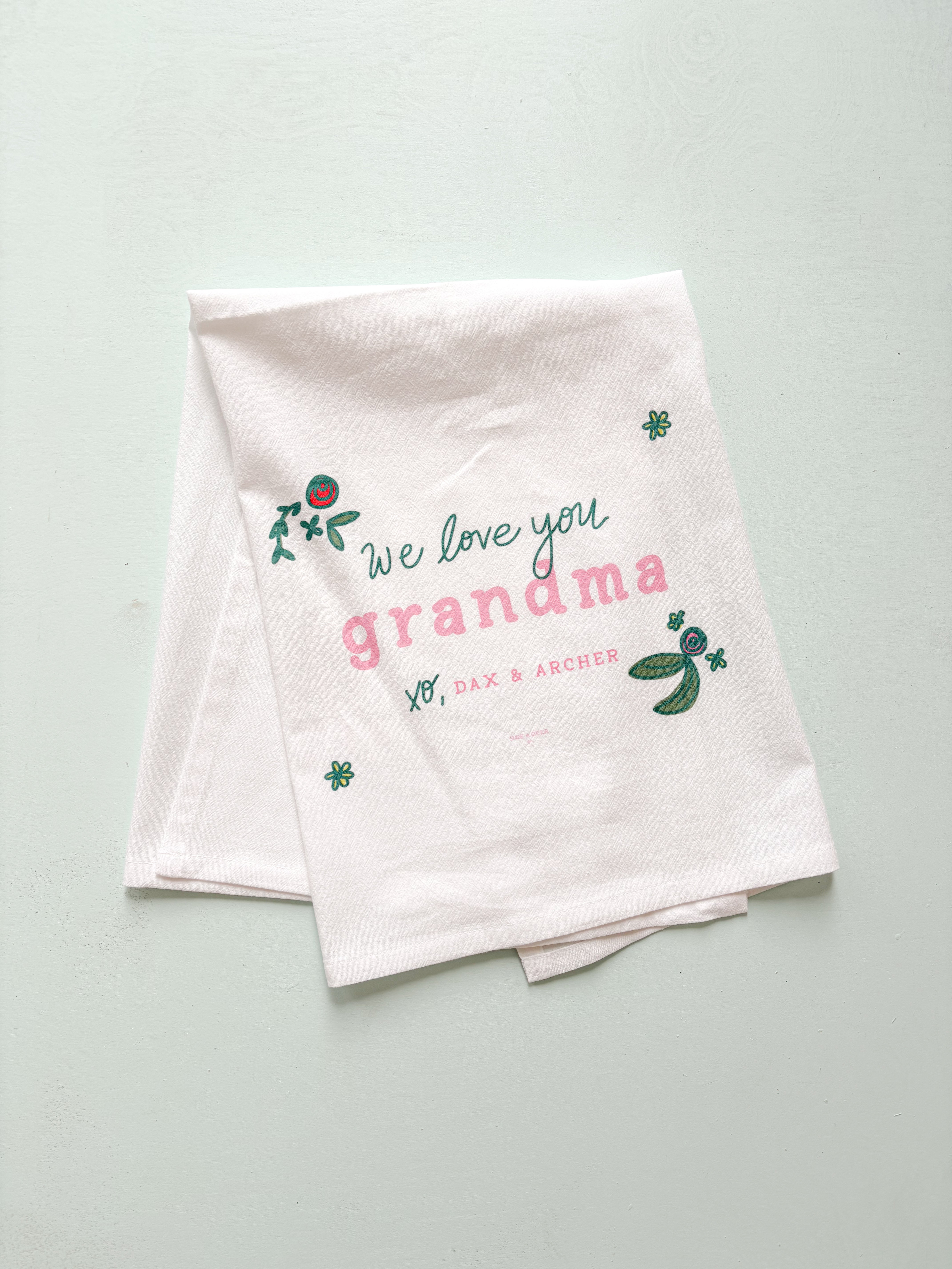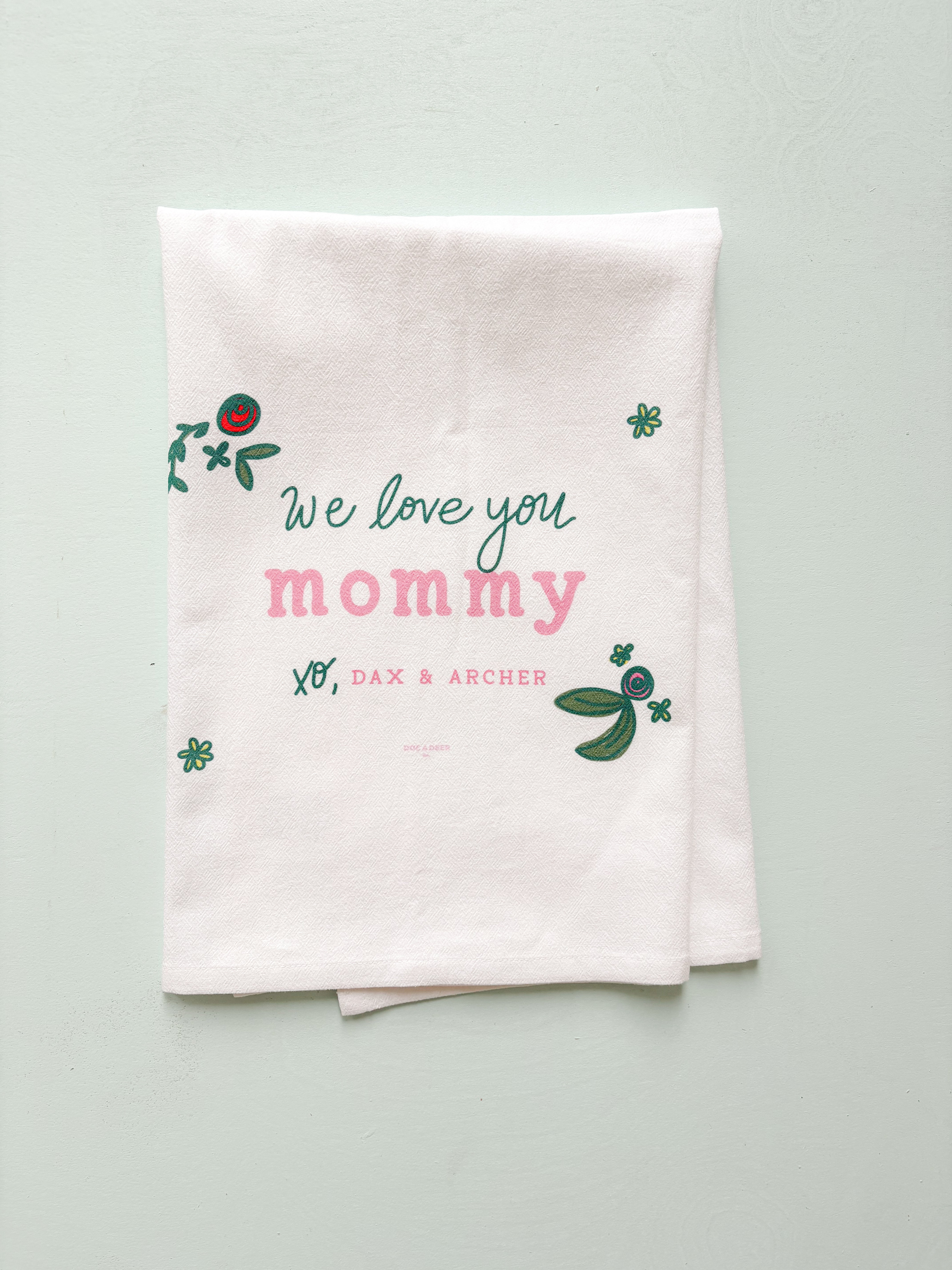 Looking for a TOTALLY unique gift this year?! We are SO excited to bring back our Customized Flour Sack Towels...this time for Mother's Day!