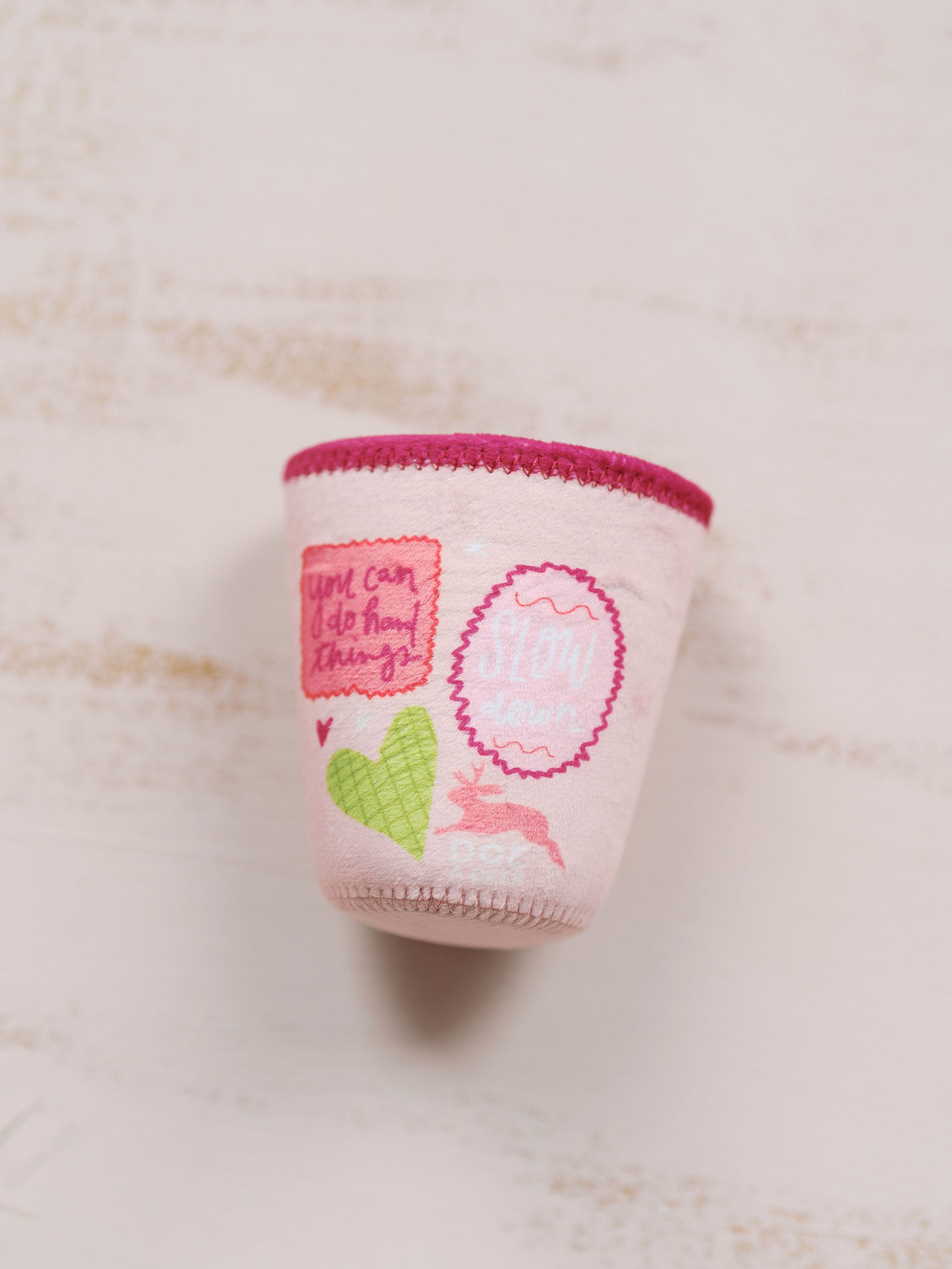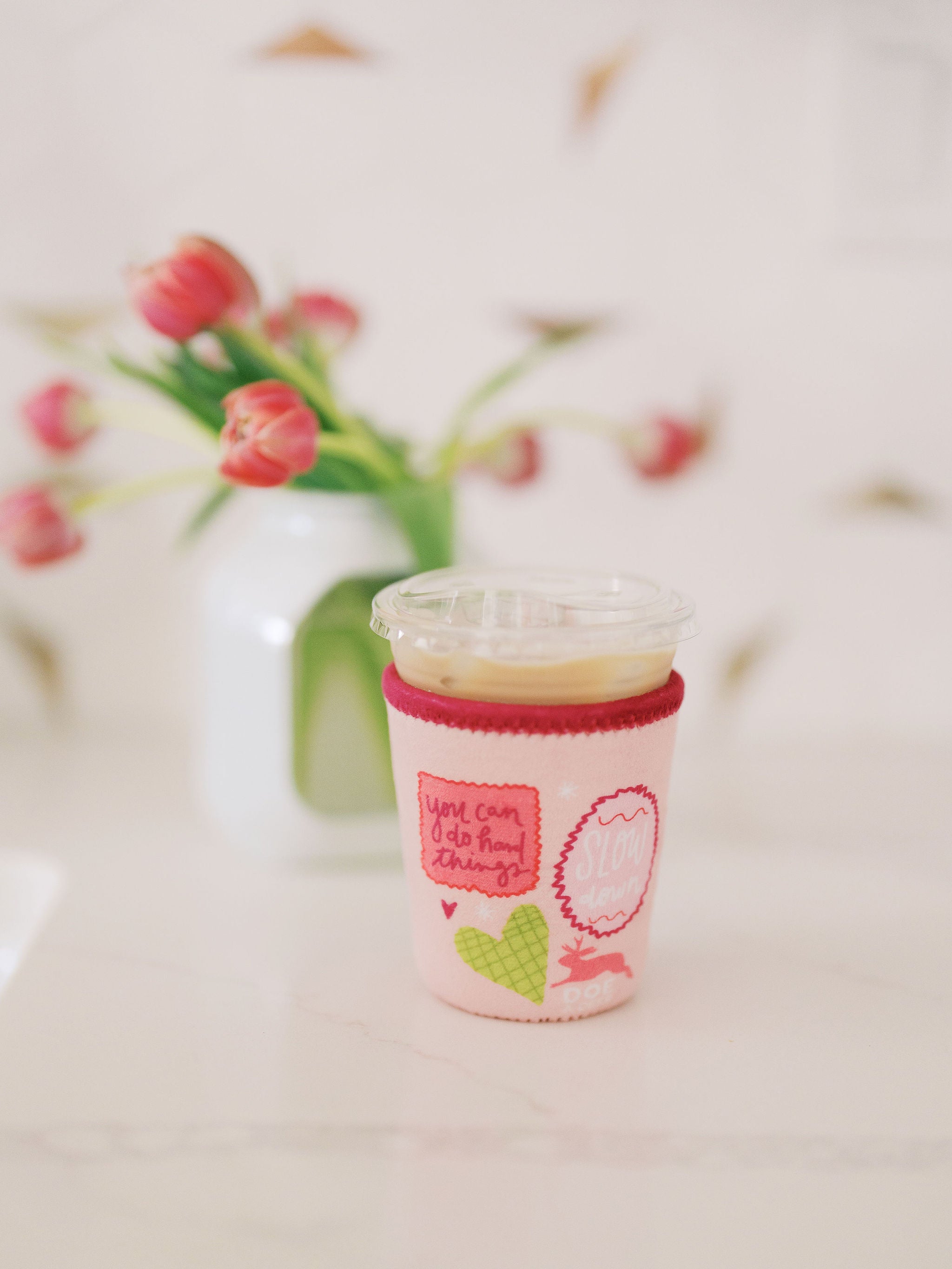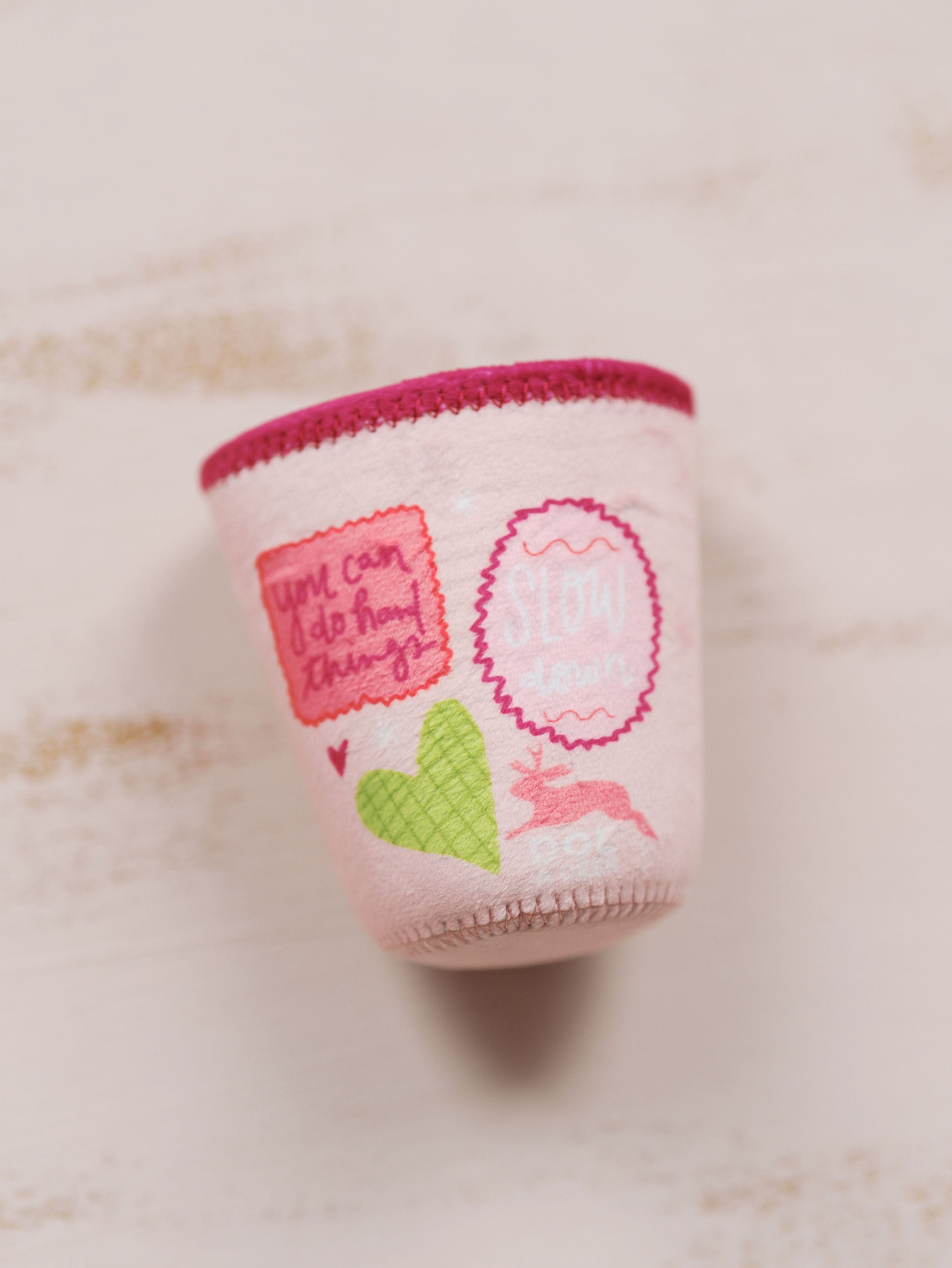 A plush pink hug for your drink and your day. Perfect for early mornings, long to-dos, and anyone who needs a tiny “you’ve got this” with every sip.
