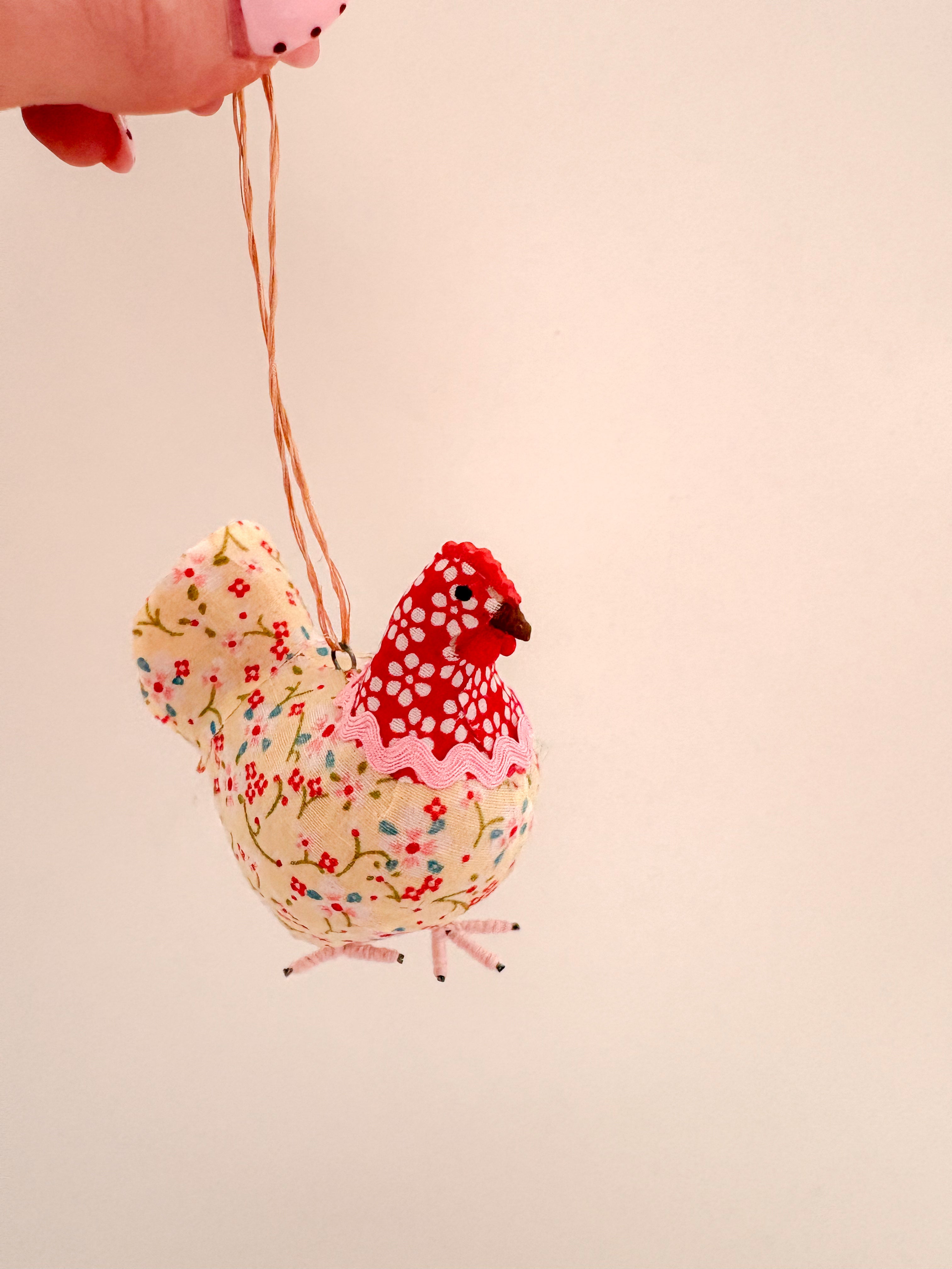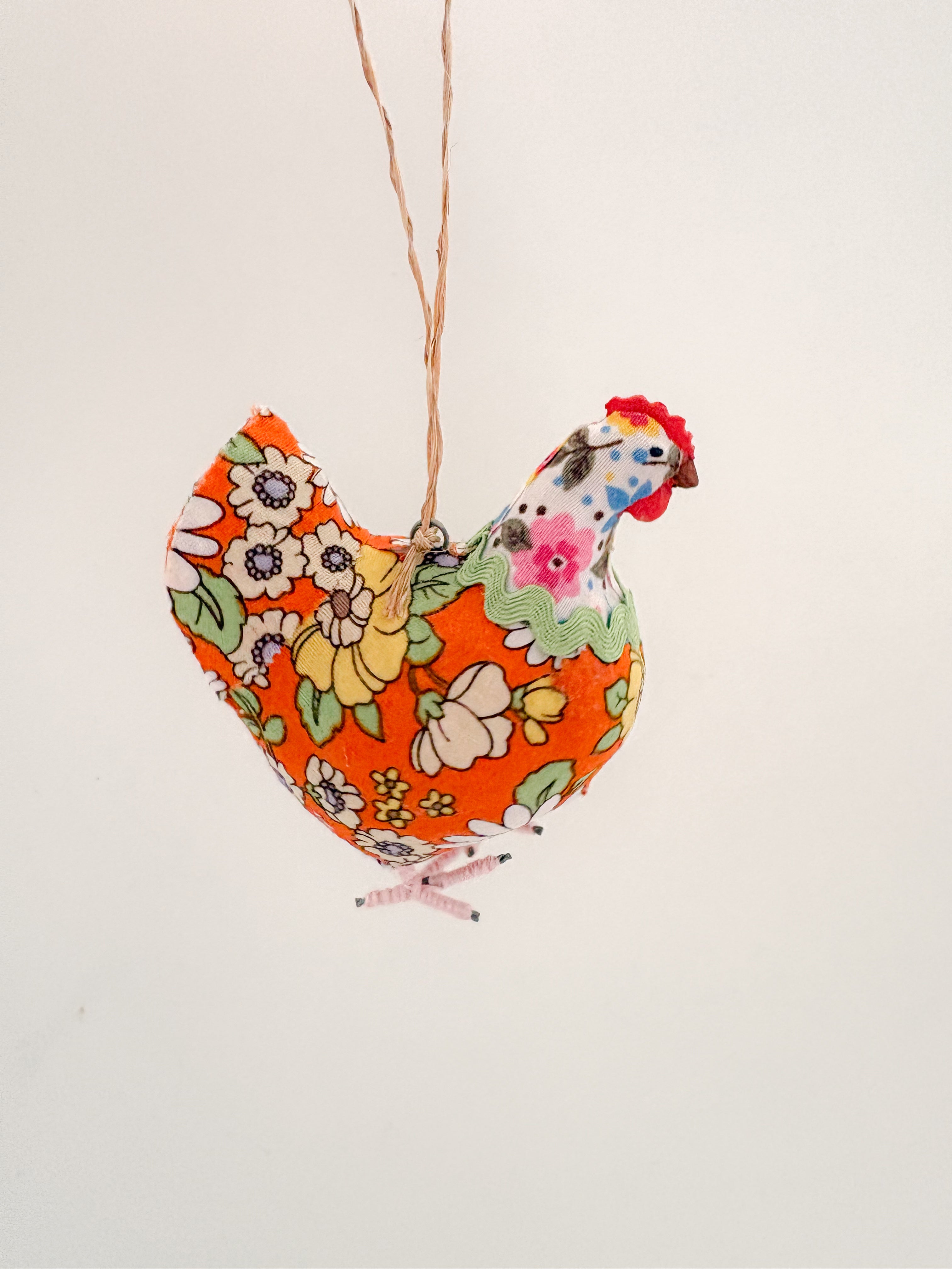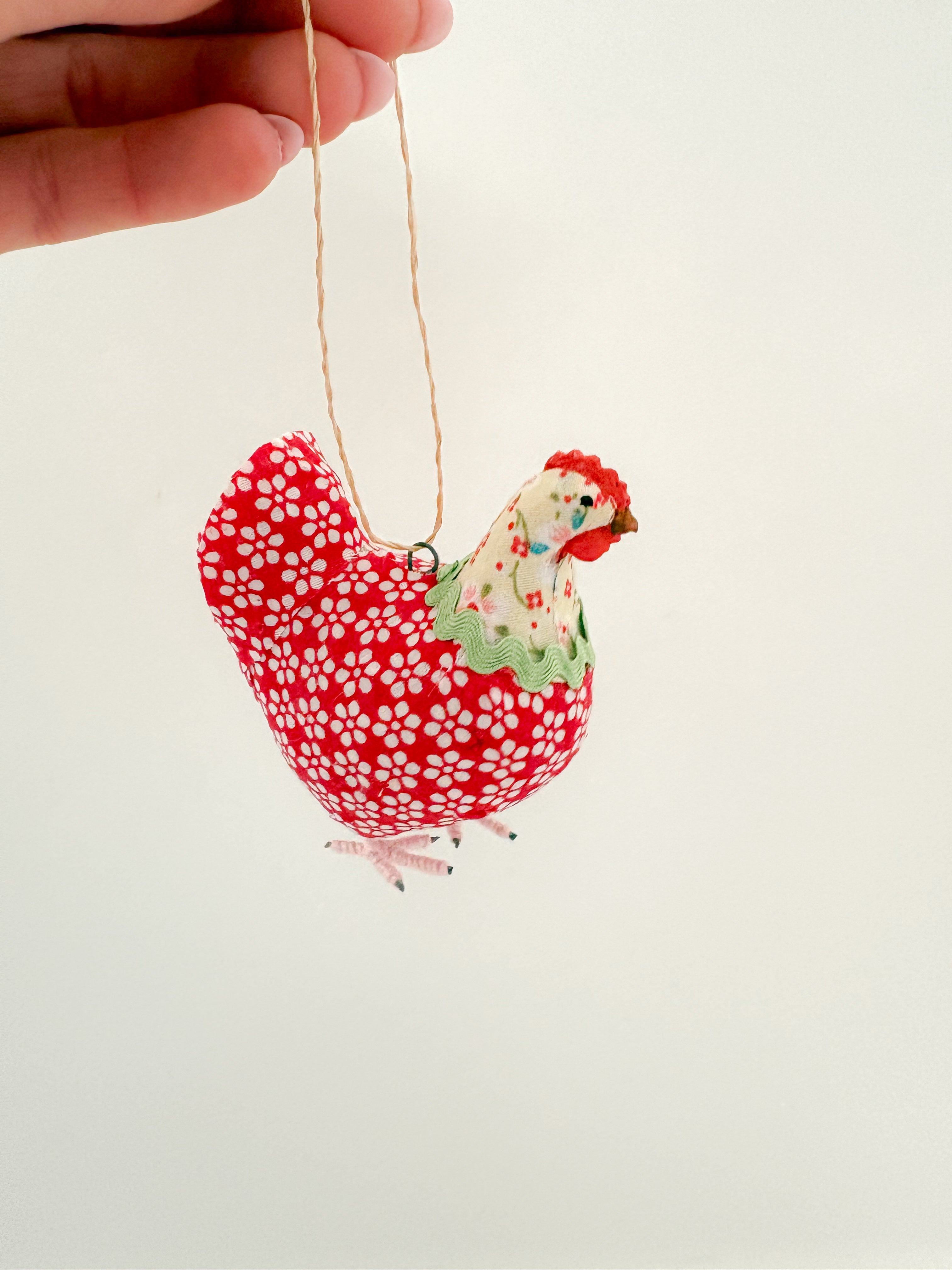 We are OBSESSED with these cute little hens! Each is covered in a vintage-y print fabric, decorated with ric-rac at the neck, and features yarn-wrapped metal feet. While technically ornaments, you'll want to keep these in your kitchen all year long!