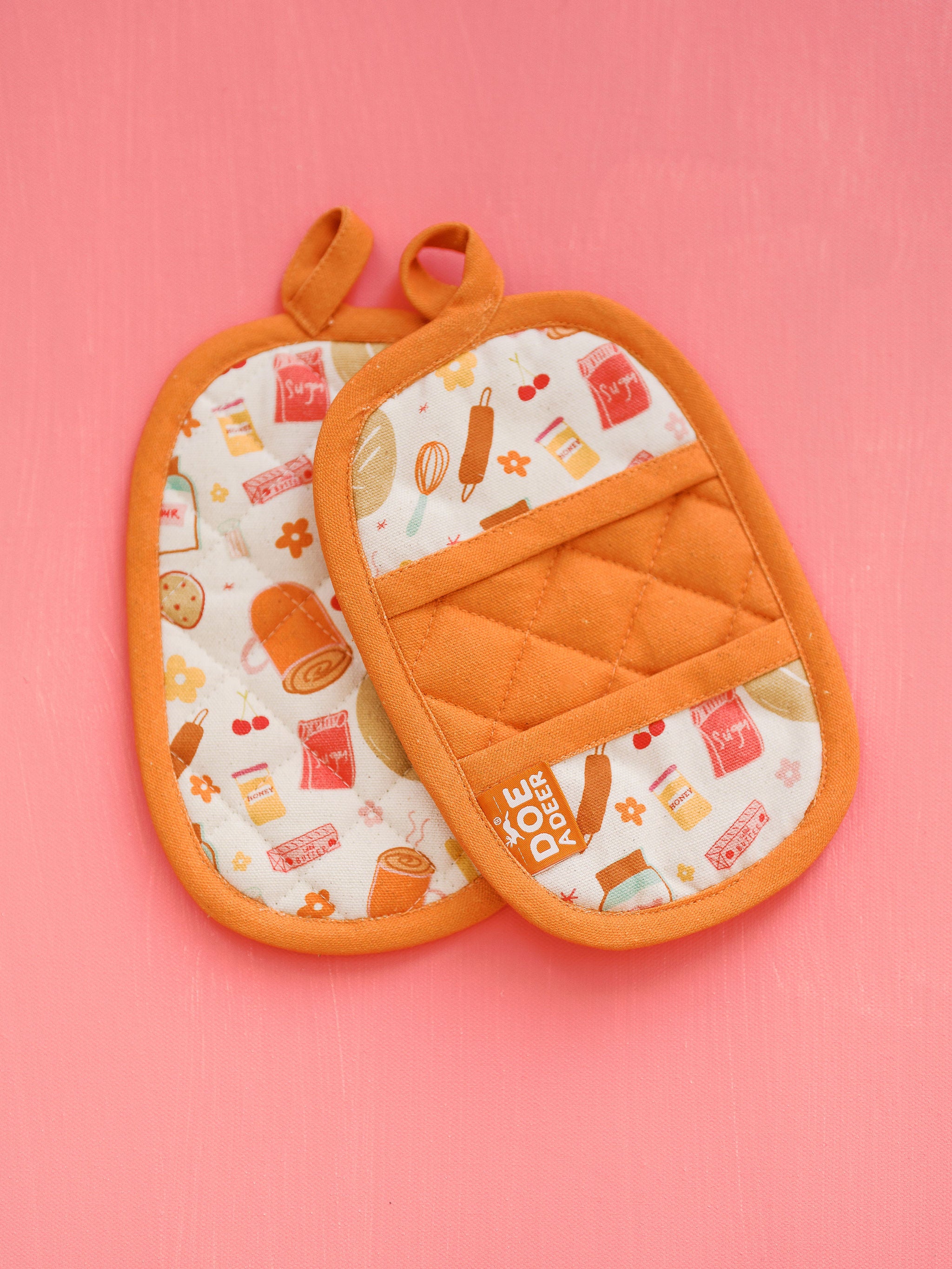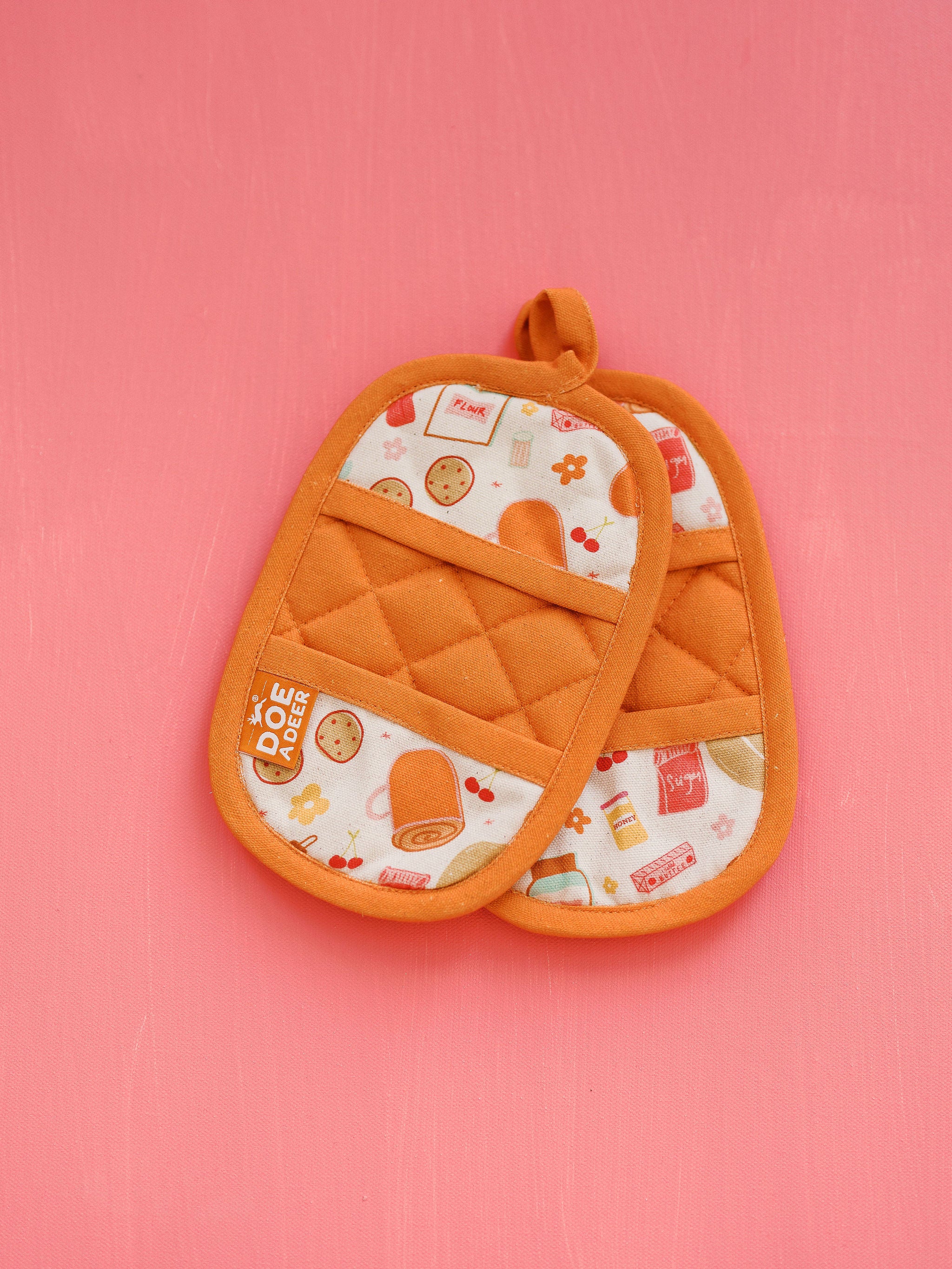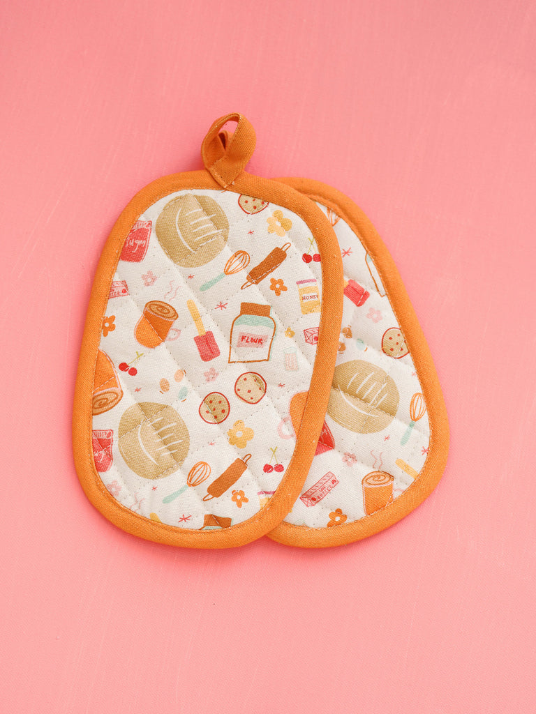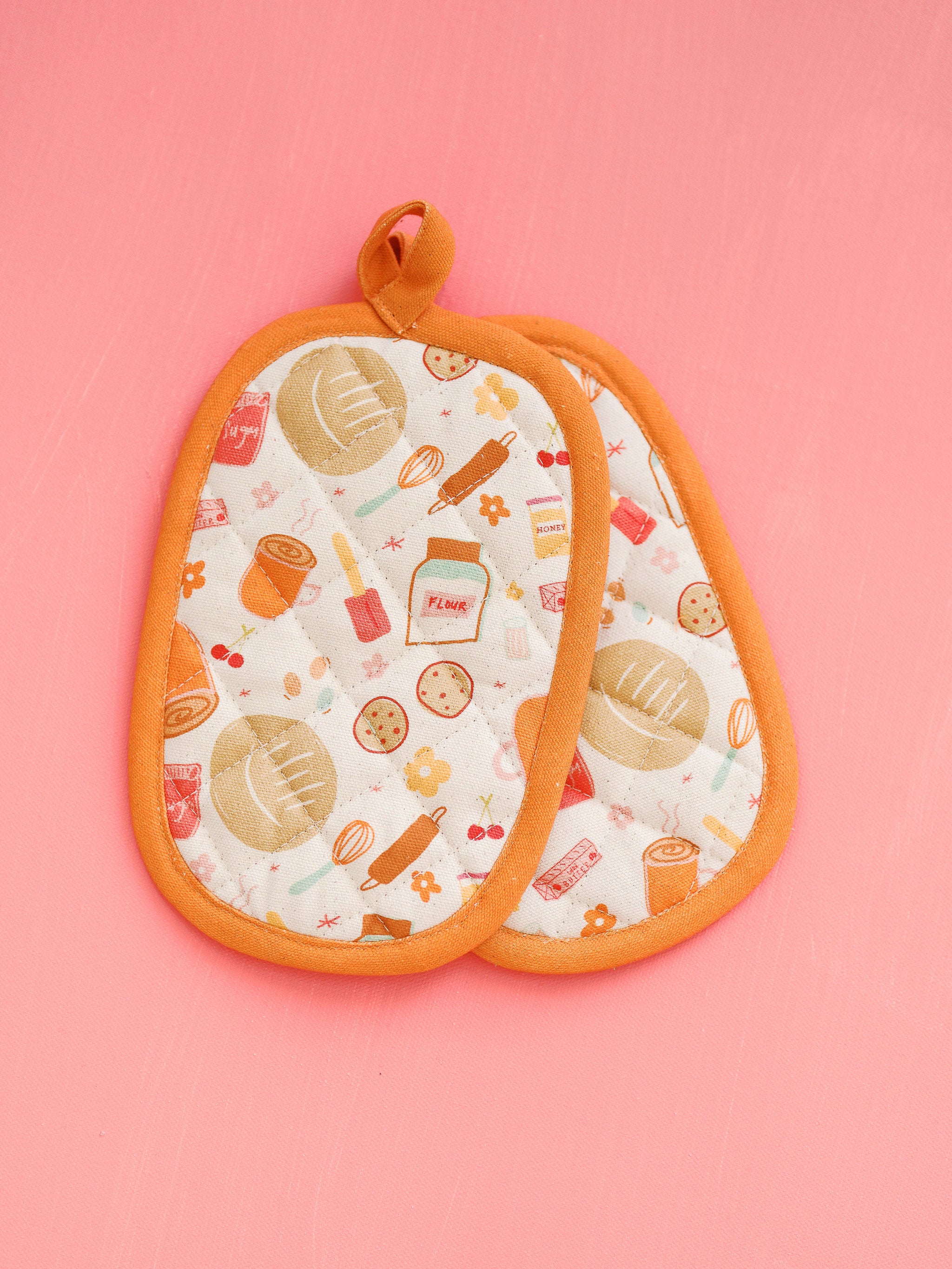 2 quilted hot pads included in each set for easy handling of whatever you’re baking (because 2 is always better than 1!)