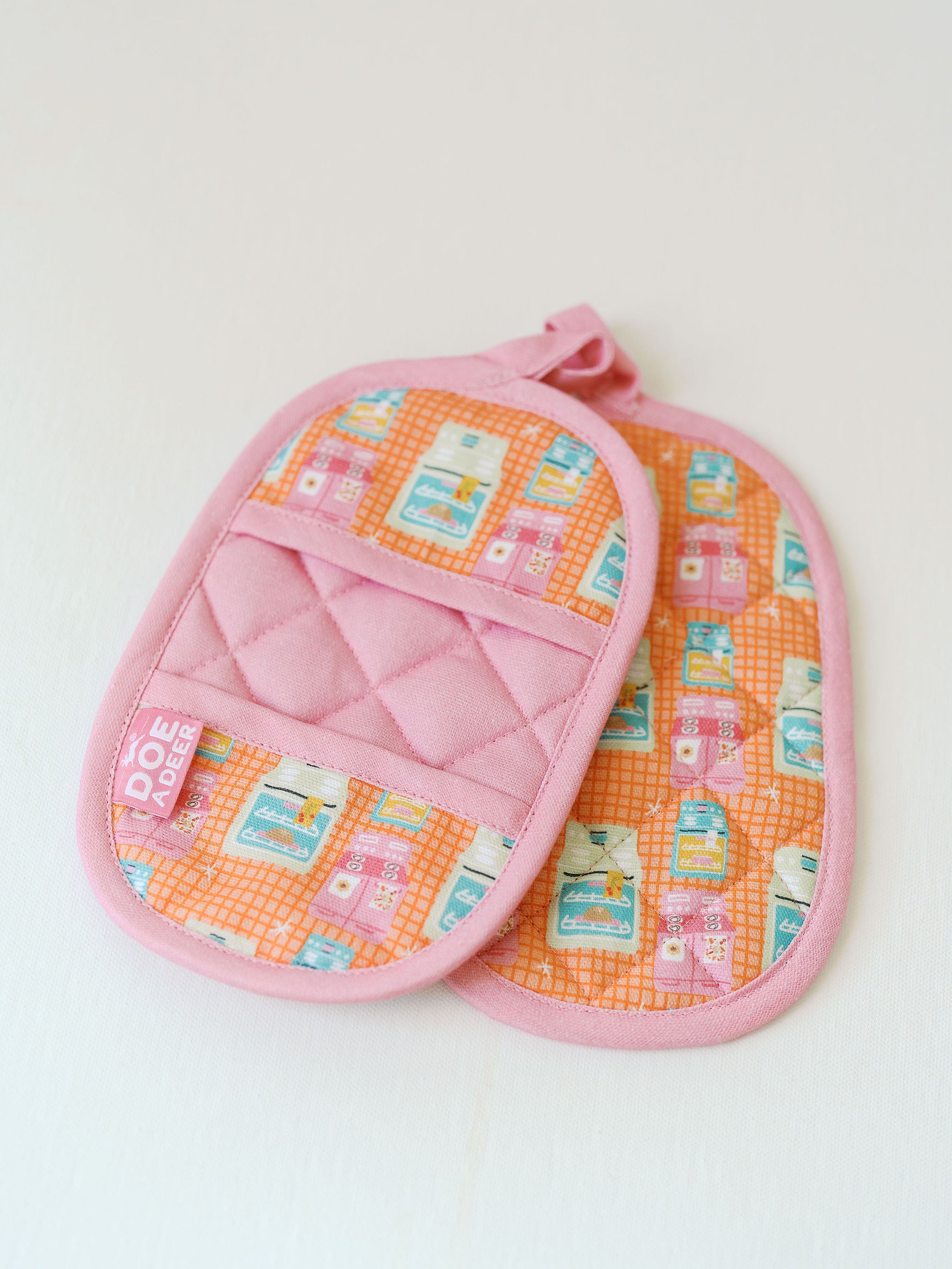 2 quilted hot pads included in each set for easy handling of whatever you’re baking (because 2 is always better than 1!)