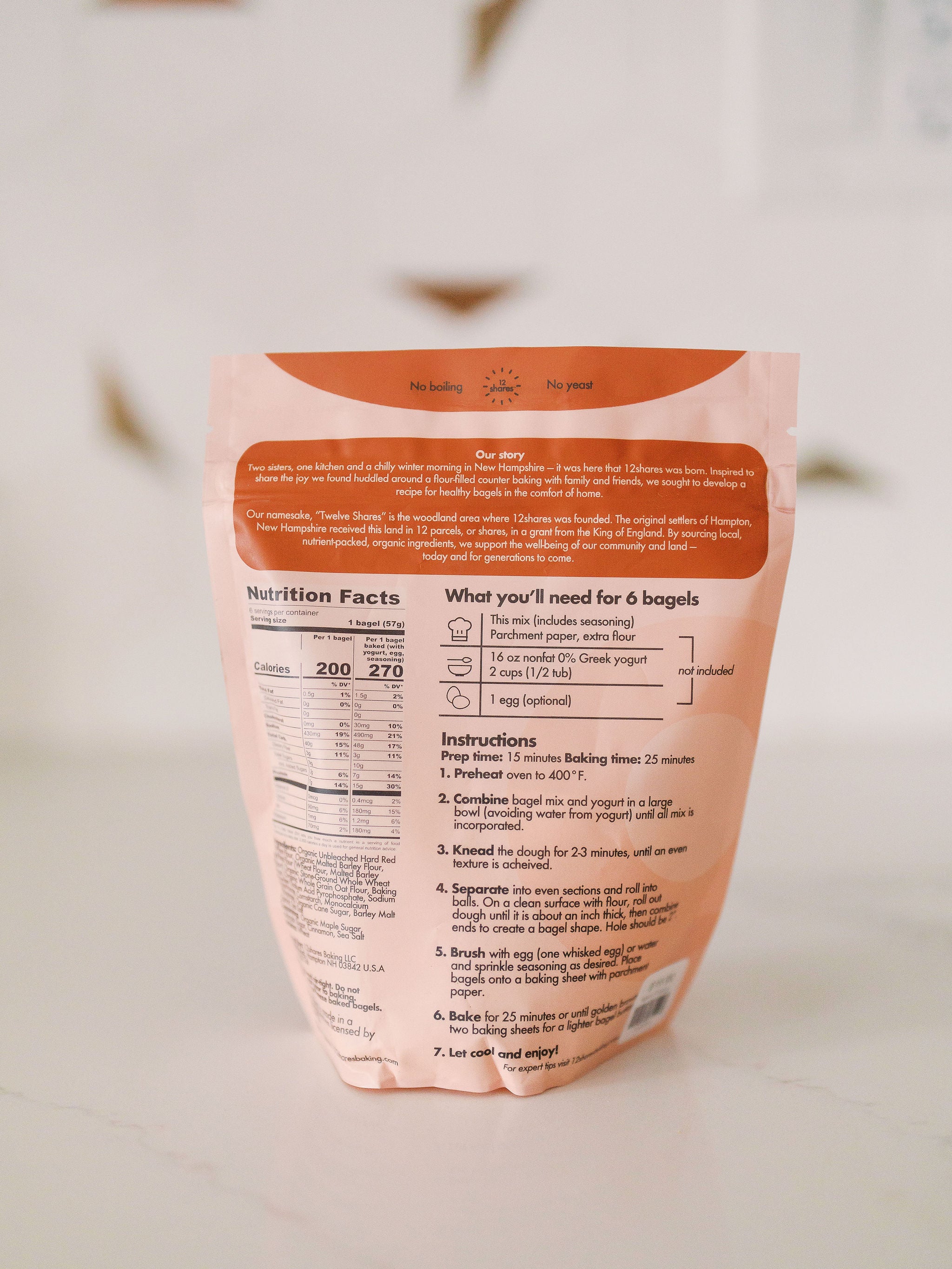 Vermont maple cinnamon bagel baking mix. bagel baking mix. Just add 0% nonfat Greek yogurt. Makes 6 bagels. Includes seasoning.