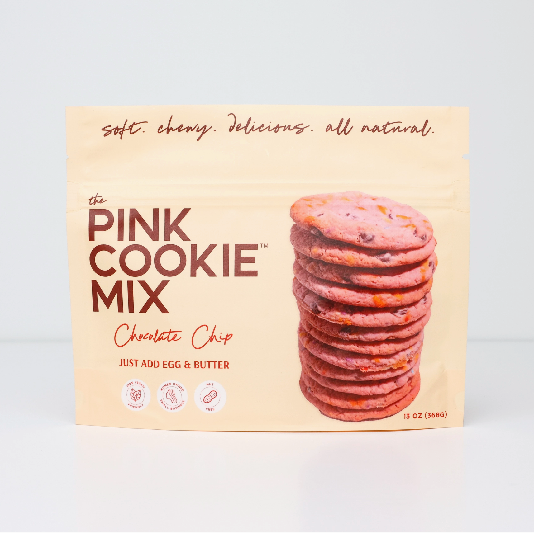 The Pink Cookie Mix right in your own kitchen. These iconic chocolate chip cookies, known for their soft, chewy texture and playful pink hue, will fill your home with the irresistible scent of freshly baked perfection—perfect for any moment you want to make special.