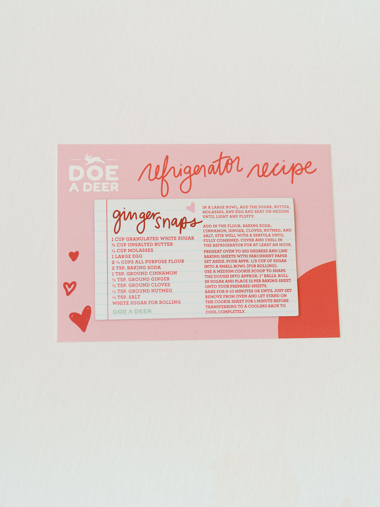 Bring vintage kitchen charm to your fridge with this handwritten gingersnap cookie recipe magnet! Designed to look like it’s jotted on lined paper, it’s sweet, nostalgic, and perfect for holding up notes, photos, or your own favorite holiday recipes.