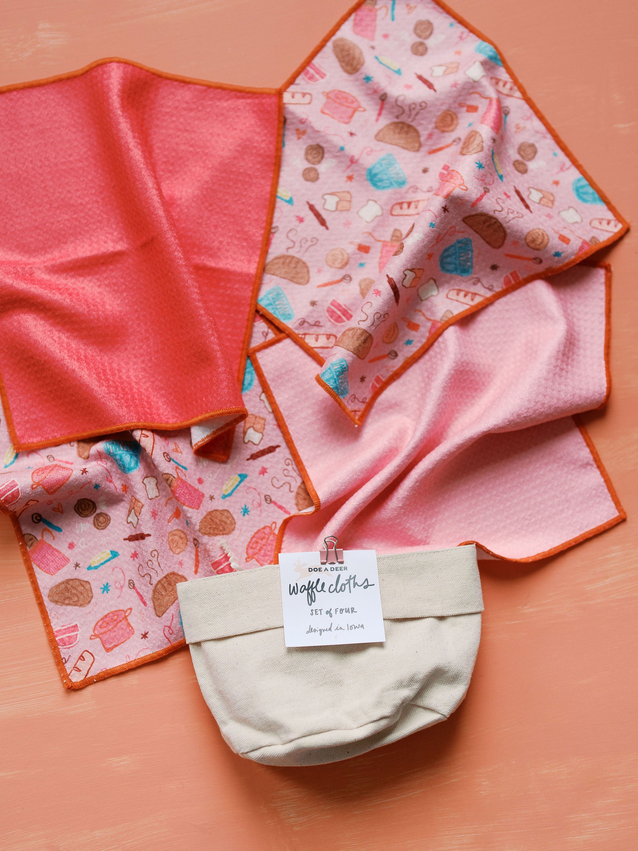 Who said cleaning has to be boring? These reusable waffle cloths are sprinkled with colorful dutch ovens, breads, and baking bits so cute you may almost forget you're wiping up spaghetti sauce. Almost. Super soft (like our waffle towels), durable, and unapologetically fun. All bundled up in a cute little basket to make for the easiest gift.