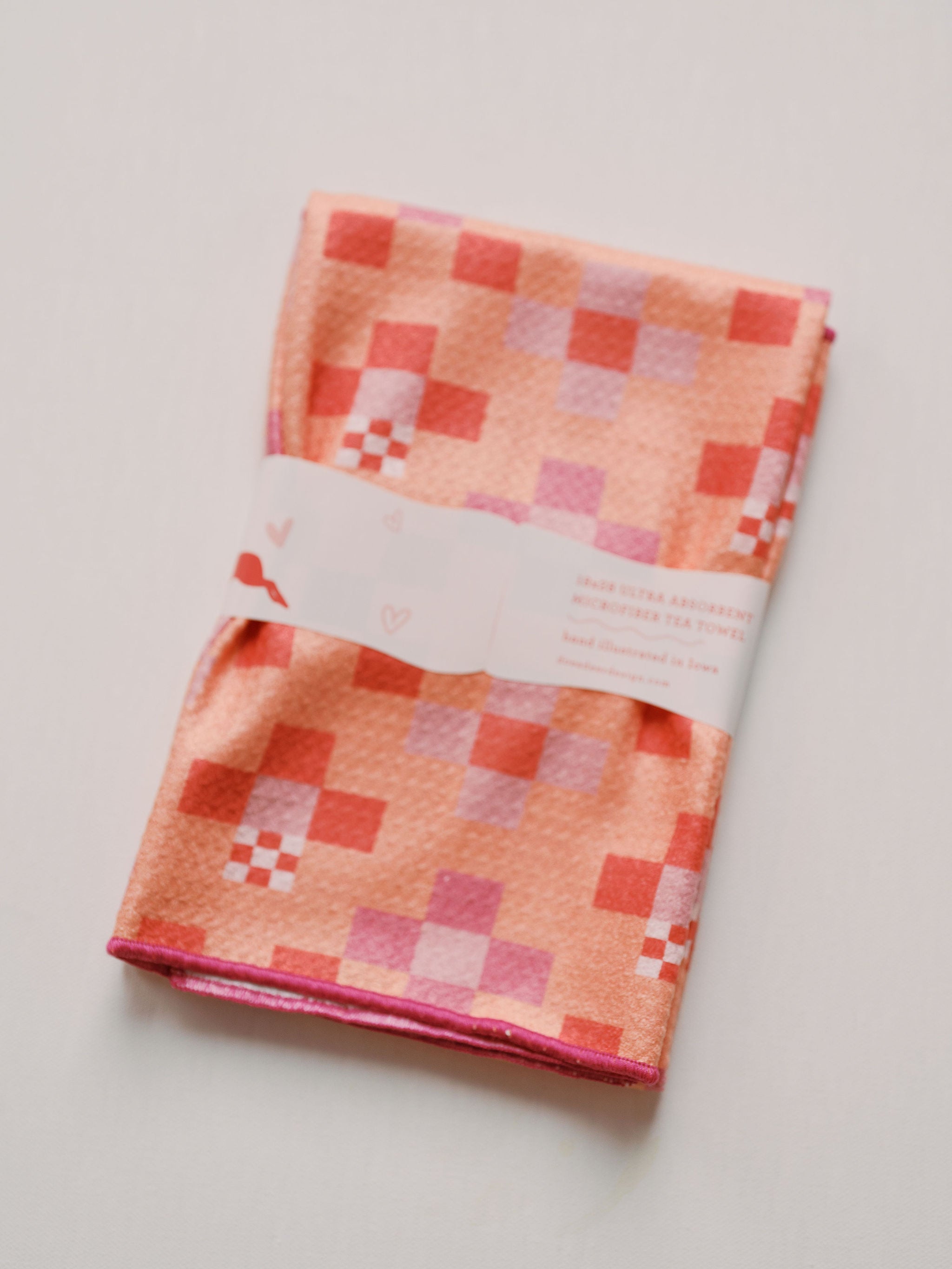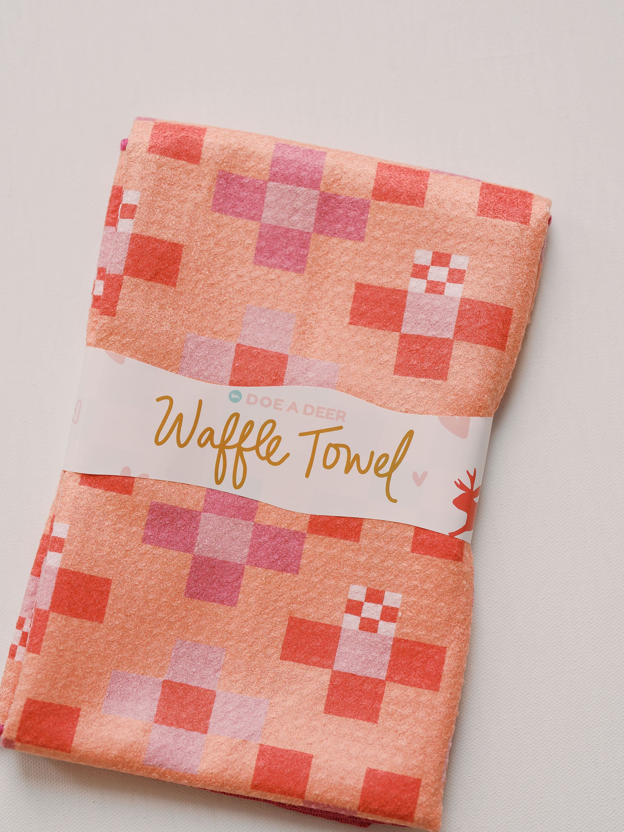 Wrap your kitchen in love with this waffle-weave towel, inspired by the warm tradition of quilted hearts and timeless companionship. Featuring a quilt block pattern made up of pink and peachy tones, this waffle towel brings vintage charm to your home with modern durability. The lightweight yet absorbent waffle texture hugs dishware and surfaces with care, while the pattern brings nostalgic quilted charm to your kitchen.