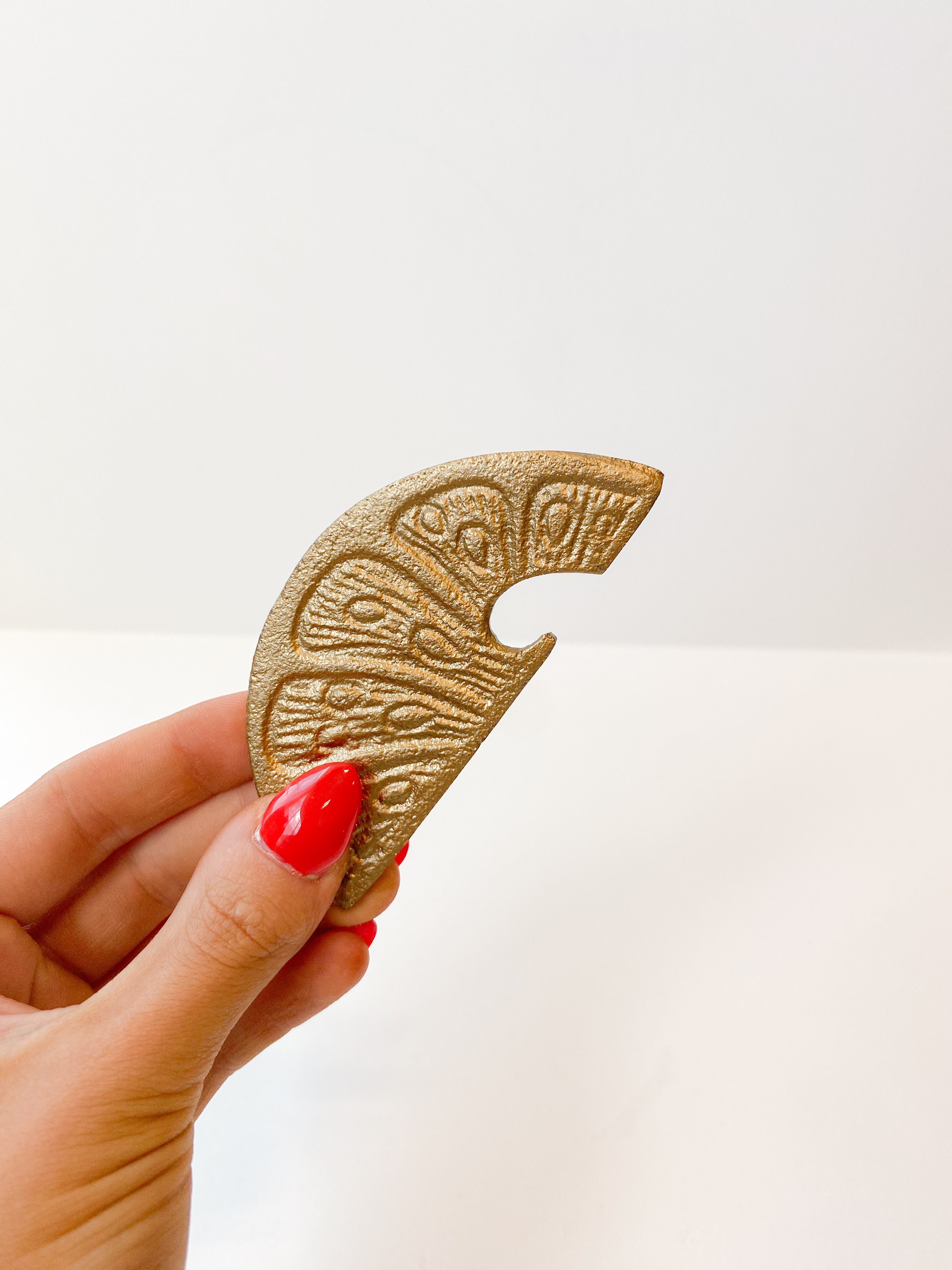 3-1/4"L x 1-1/2"H Metal Citrus Slice Shaped Bottle Opener, Antique Gold Finish