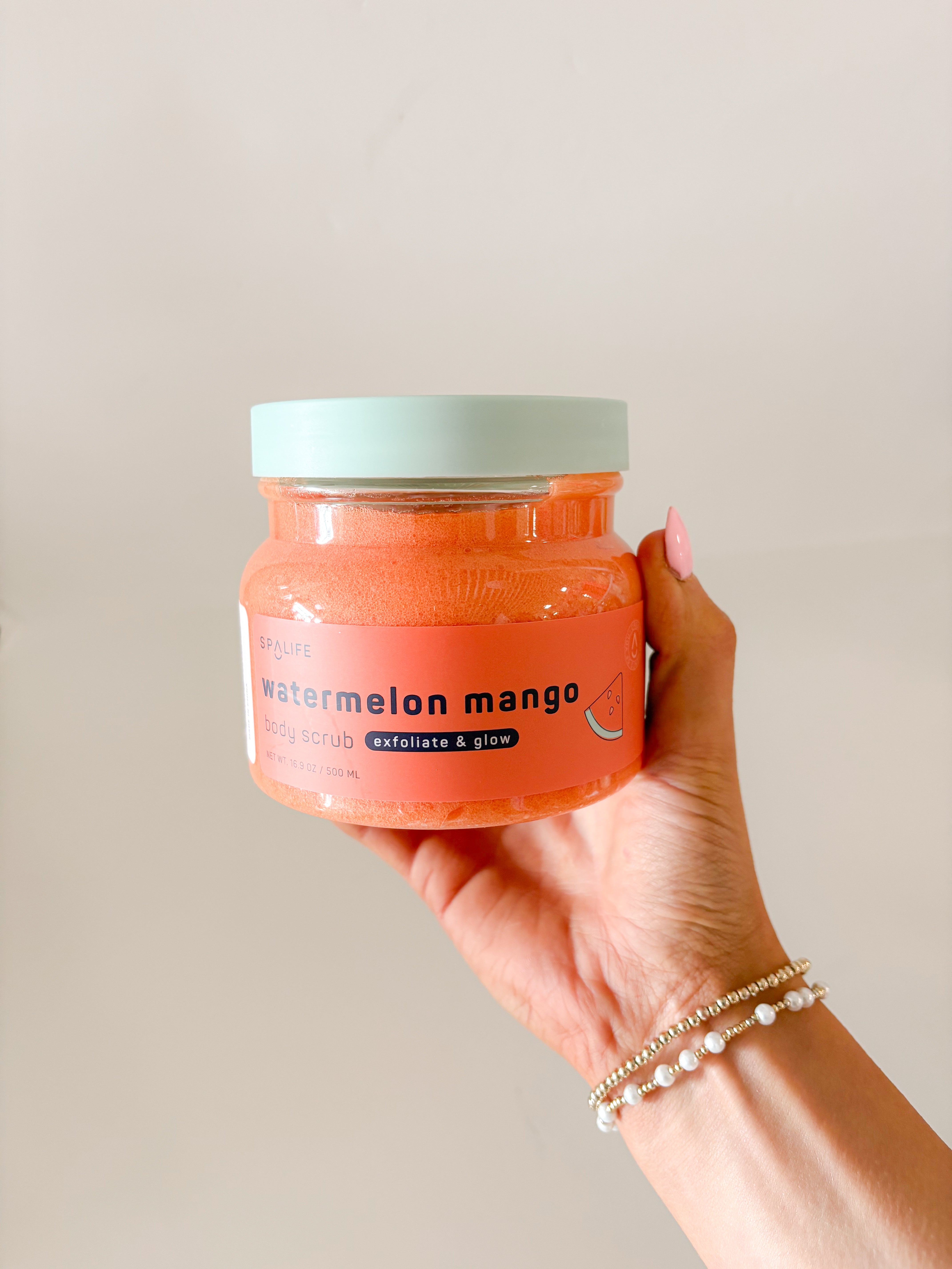 A Watermelon mango body scrub that gently exfoliates & nourishes, leaving skin feeling satin-smooth! Made with skin-strengthening watermelon mango for long-lasting hydration, this body scrub gently polishes skin, exfoliating with granular crystals to reveal visible radiance and a satiny-smooth appearance.