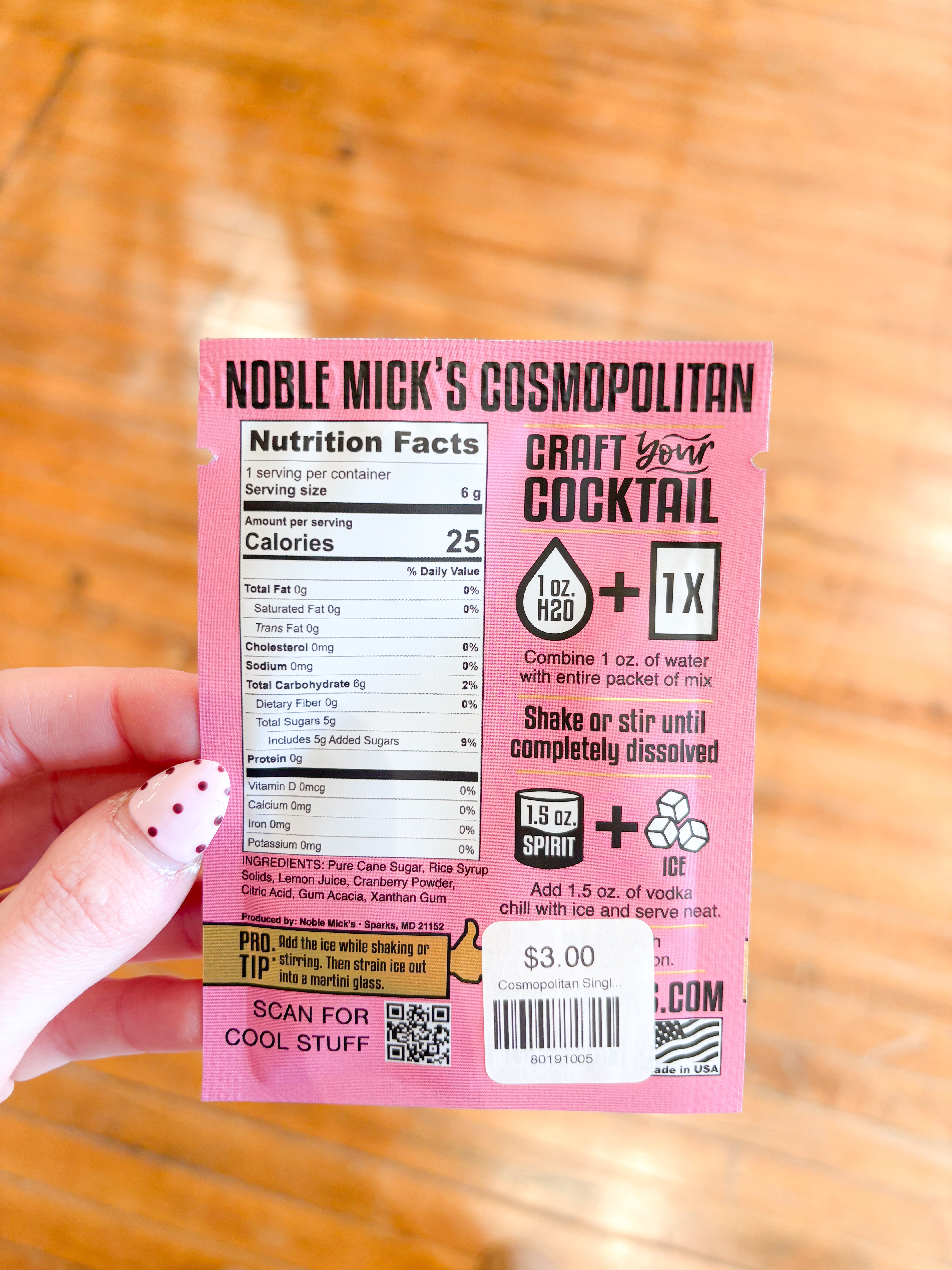 This mix makes the perfect Cosmopolitan...spirit-forward with the perfect tartness from cranberry and citrus with just enough sweetness. Simply combine water, mix, + spirit for a craft cocktail anytime, anywhere.