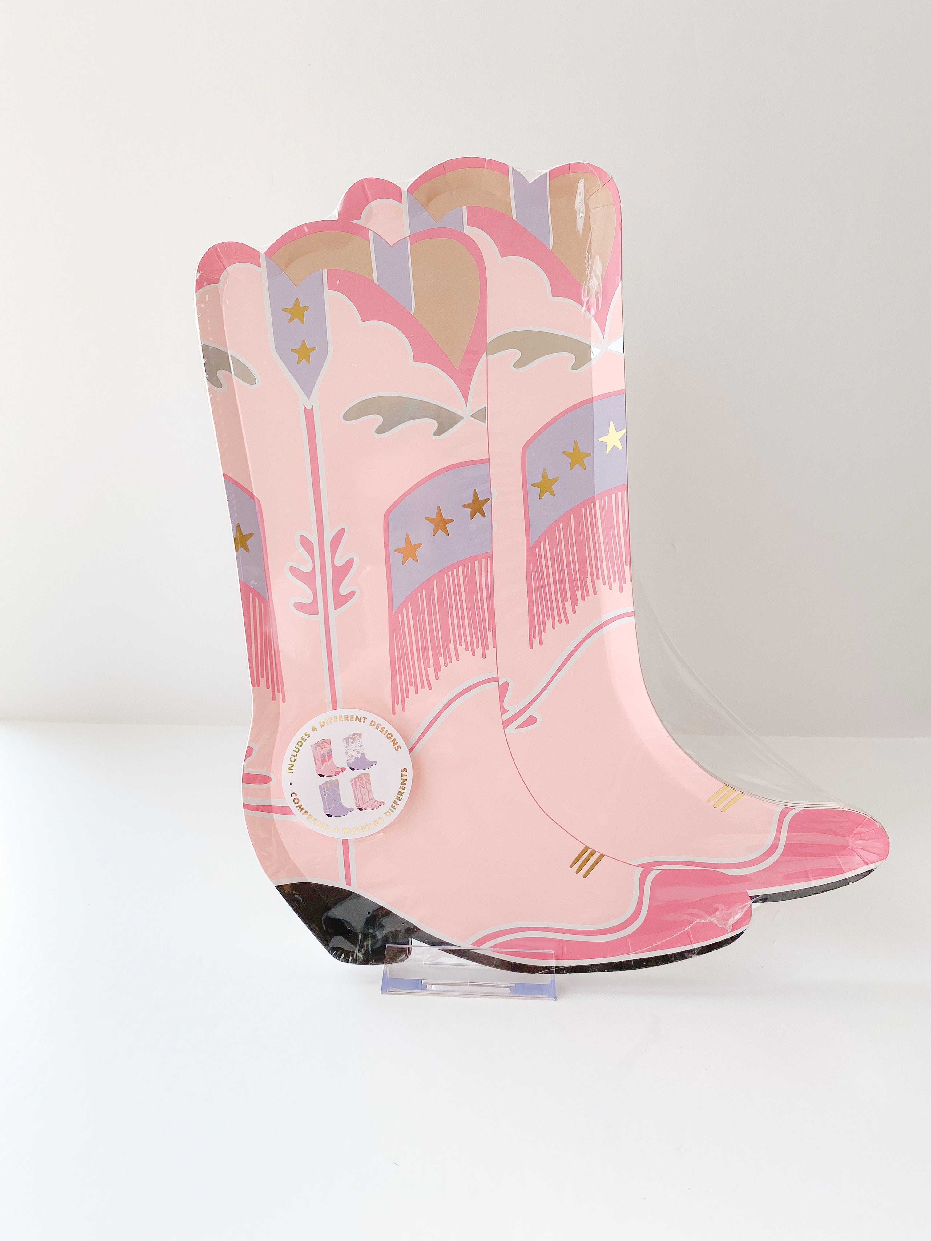 Calling all cowgirls! Our "Pony Tales" collection has everything you need to gear up for your next rodeo. These cowgirl boot plates feature pink boots trimmed with gold and silver foil details.