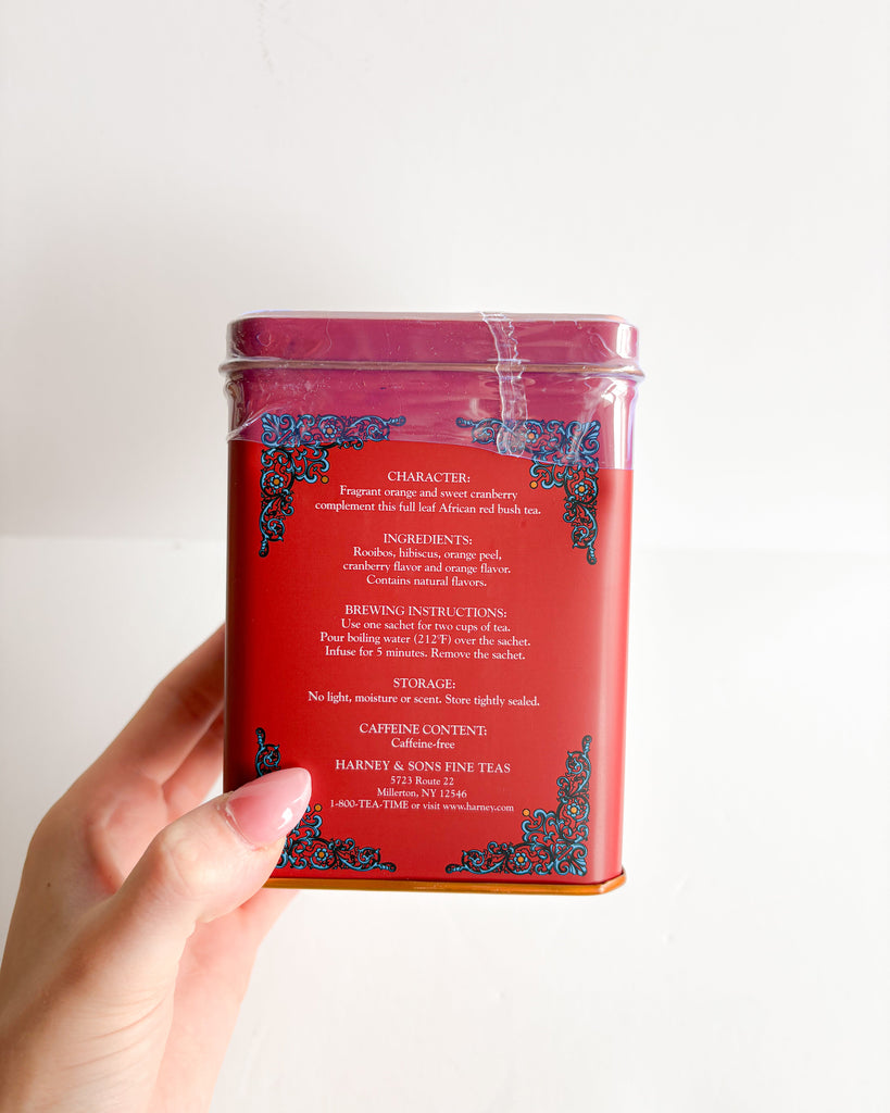 We are not even sure that Africa has an autumn, but the marriage of herbal rooibos (red bush), cranberry and oranges suggests that in our imaginations, it does! The base of Harney & Sons African Autumn, our popular herbal blend, is rooibos a legume also known as 'red bush' native to South Africa. Rooibos is oxidized, which changes the color to red, and when brewed, it looks similar to the red of "black" tea. Loaded with antioxidants, fans love the brightness of the rooibos accented by cranberry and citrus. Caffeine free.