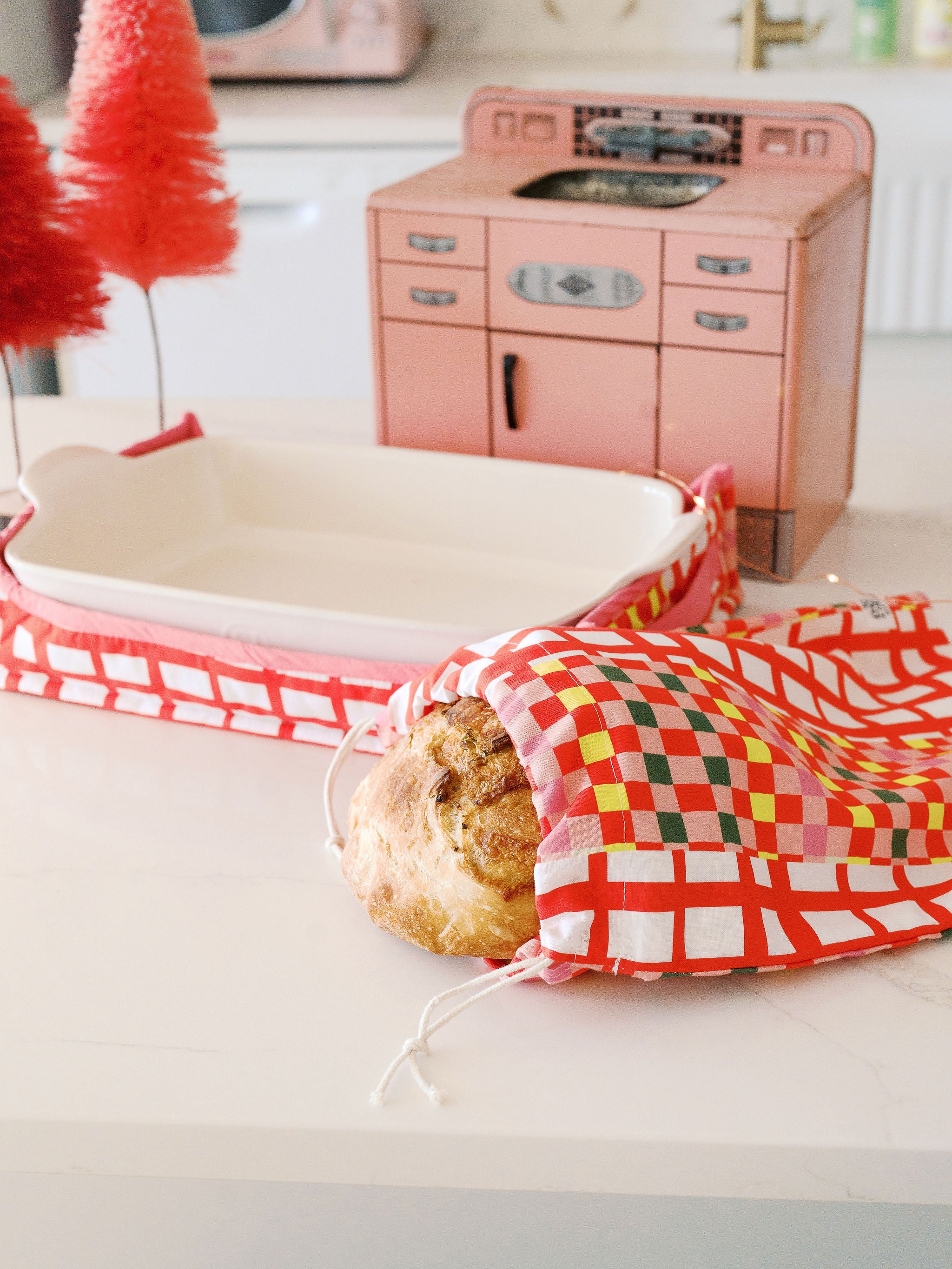 Wrap up your homemade bread in a pop of plaid and a whole lot of personality! This Fa La La Flannel bread bag brings the cozy, colorful vibes of flannel PJs to your holiday bakes. Cute, reusable, and full of kitchen cheer!
