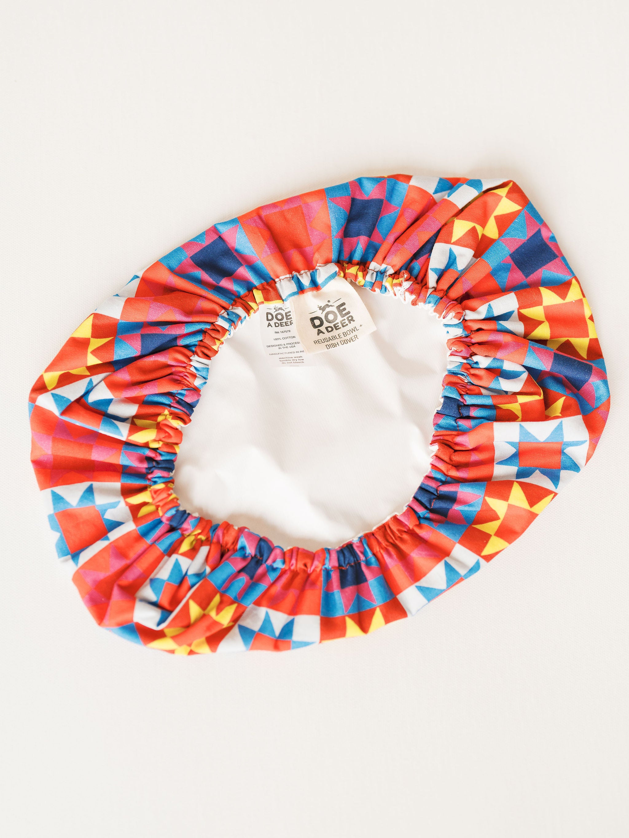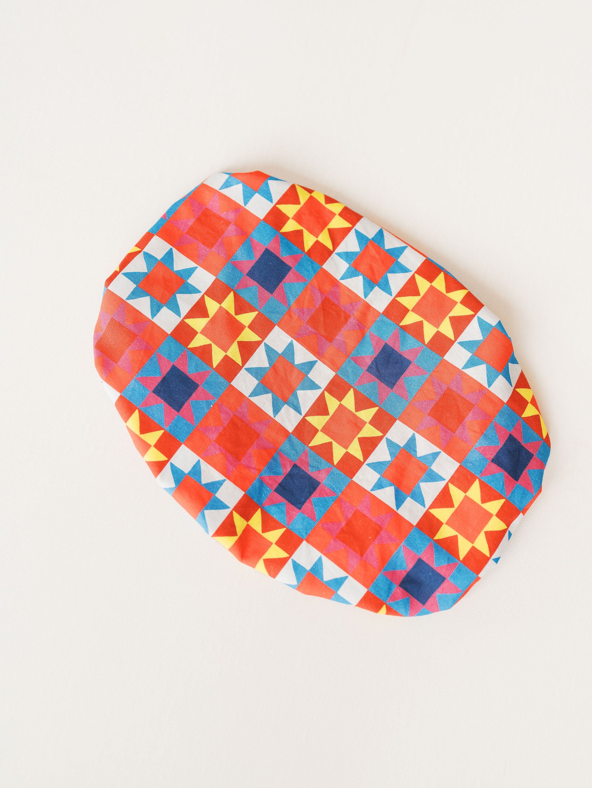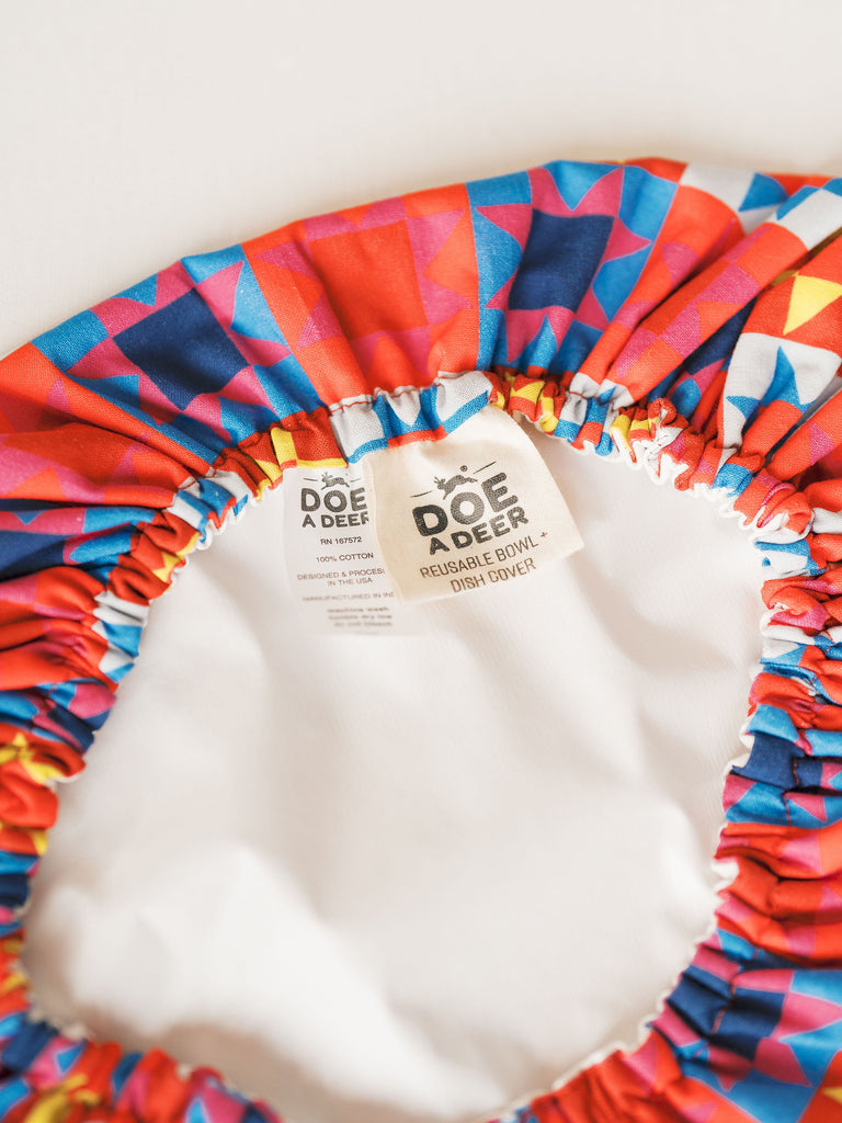 This quilt-inspired dish cover fits perfectly over 9x13 pans, keeping your food fresh in the cutest way! With bright reds, blues, and cheery starbursts, it’s stretchy, reusable, and oh-so-charming—because every dish deserves a little extra love! It's as cute as it is practical.